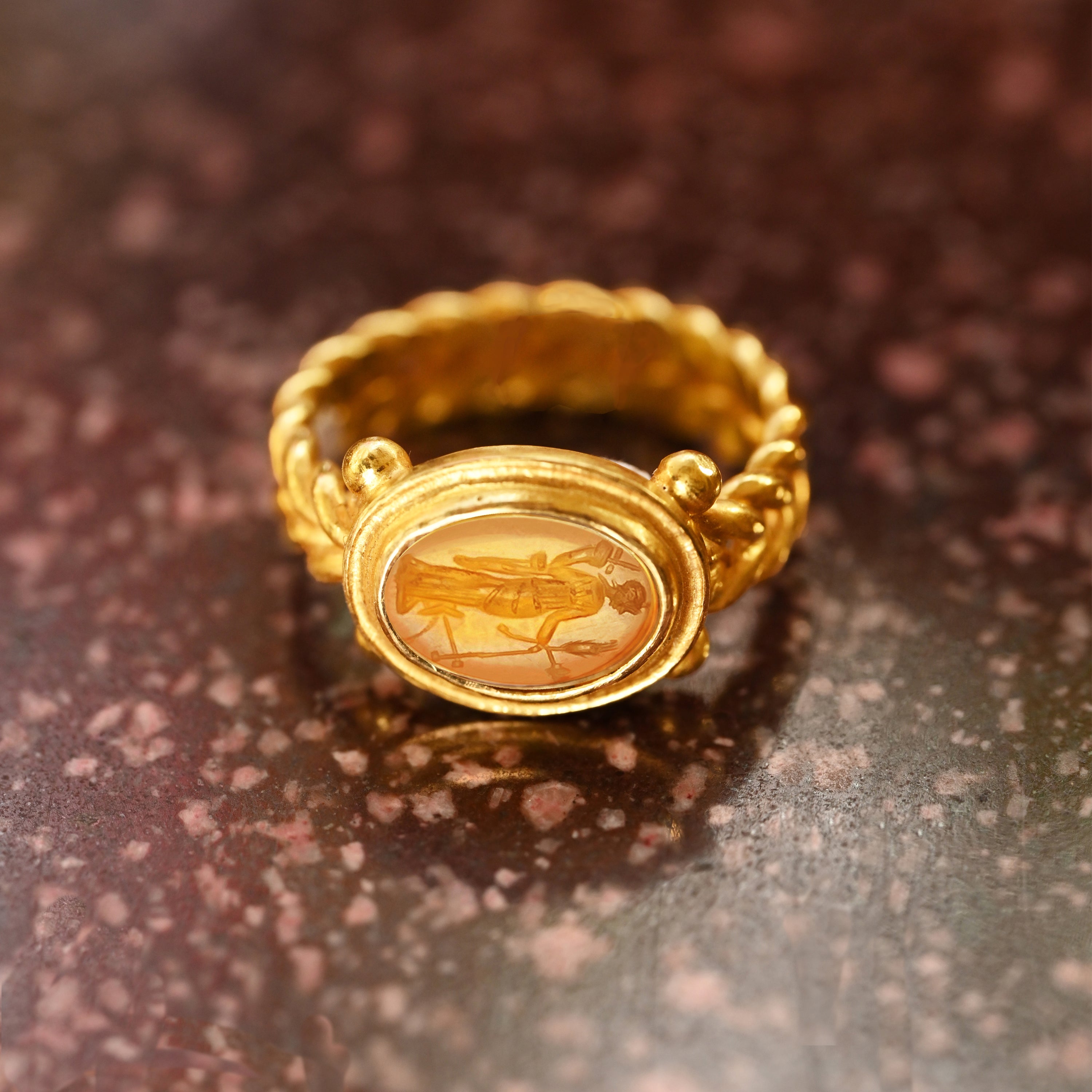 • Authentic Ancient Roman Intaglio 1st Cent AD • Gemstone: Carnelian • 7 1/4 US Adjustable • Band material: Gold 18 Kt • Handmade 100% Made in Italy • Worldwide Delivery Time: 1-5 Business Days * Free Express and Insured Worldwide Shipping