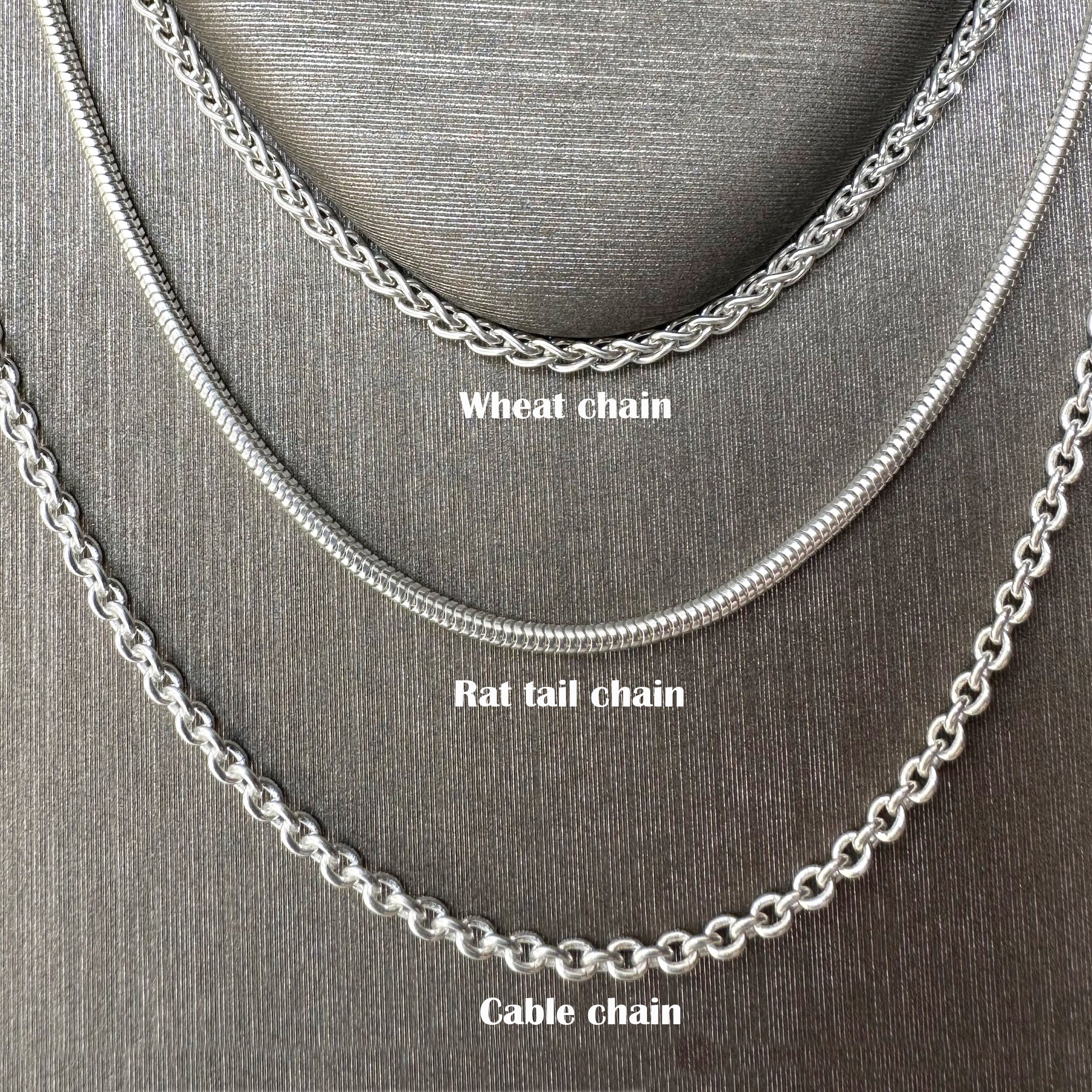 The diameter of the chain is 0,095 inches so you can wear it alone or with a pendant on it, enhancing your style!