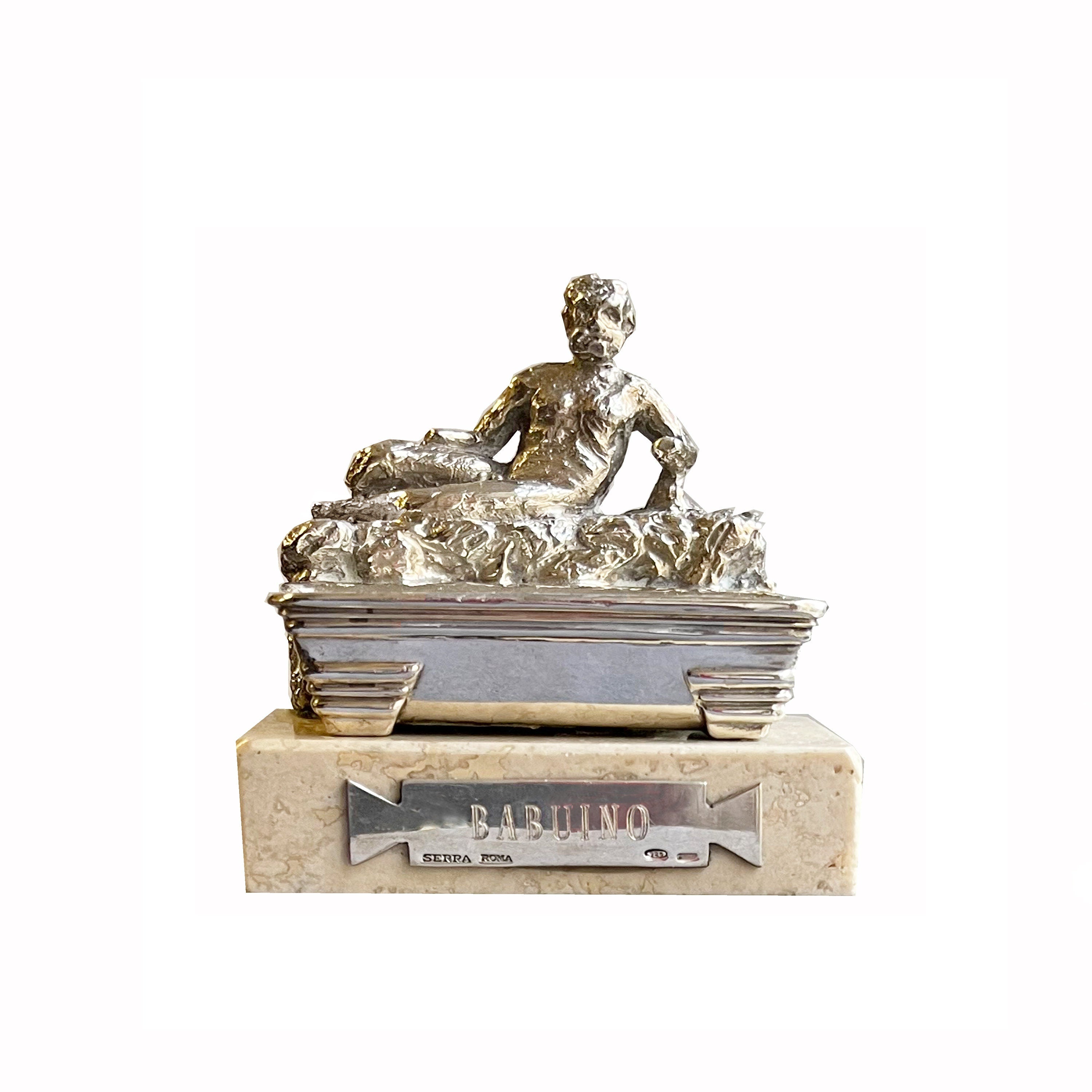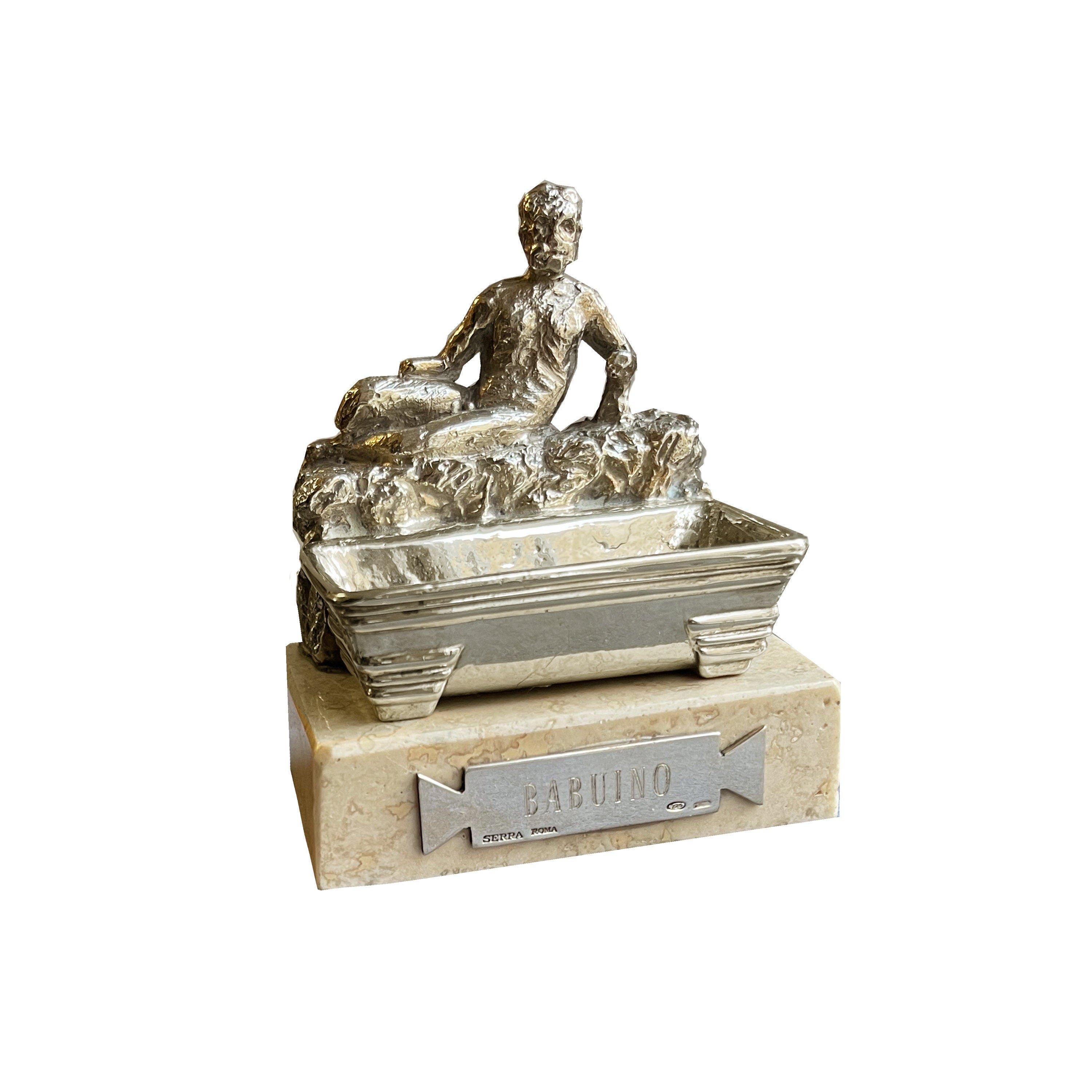 Babuino fountain replica in sterling silver and travertine (Rome, via del Babuino, around 1576): one of the 6 "talking statues" of Rome