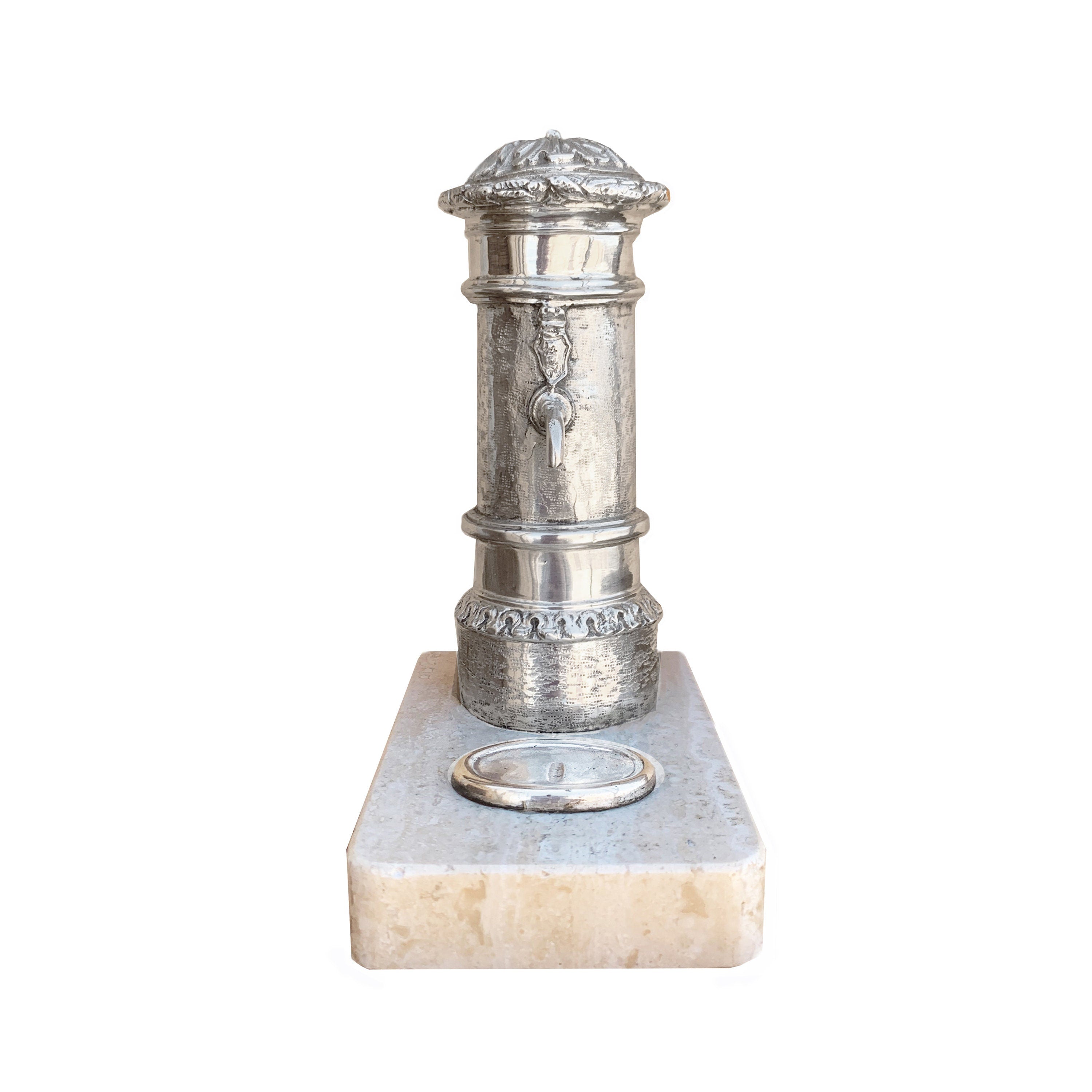 Large Fontanella del Nasone, typical fountain of Rome, in sterling silver and Travertine.