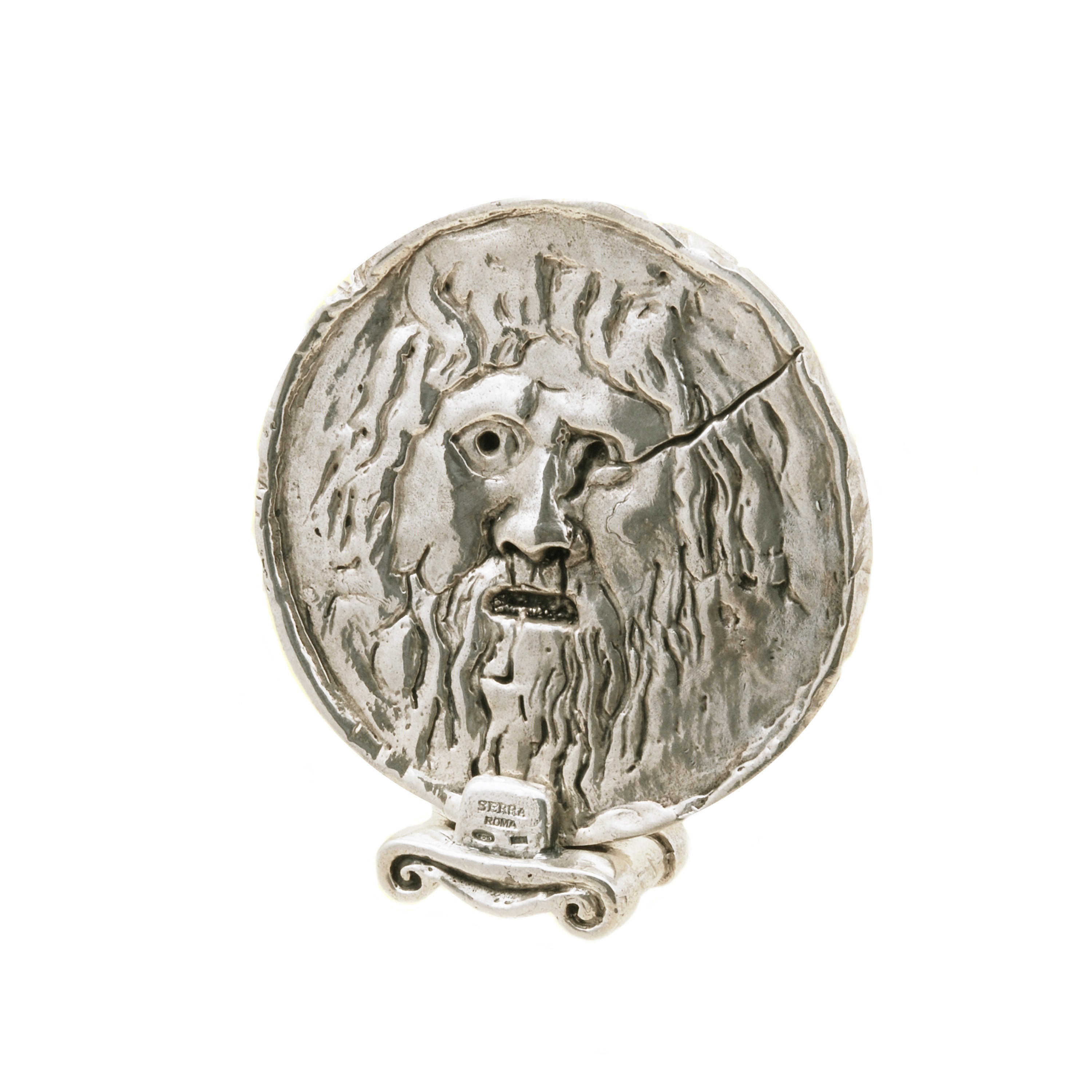 Reproduction in 925 silver of "The mouth of truth ": ancient mask in pavonazzetto marble, walled in the wall of the pronaos of the church of Santa Maria in Cosmedin in Rome, since 1632.
