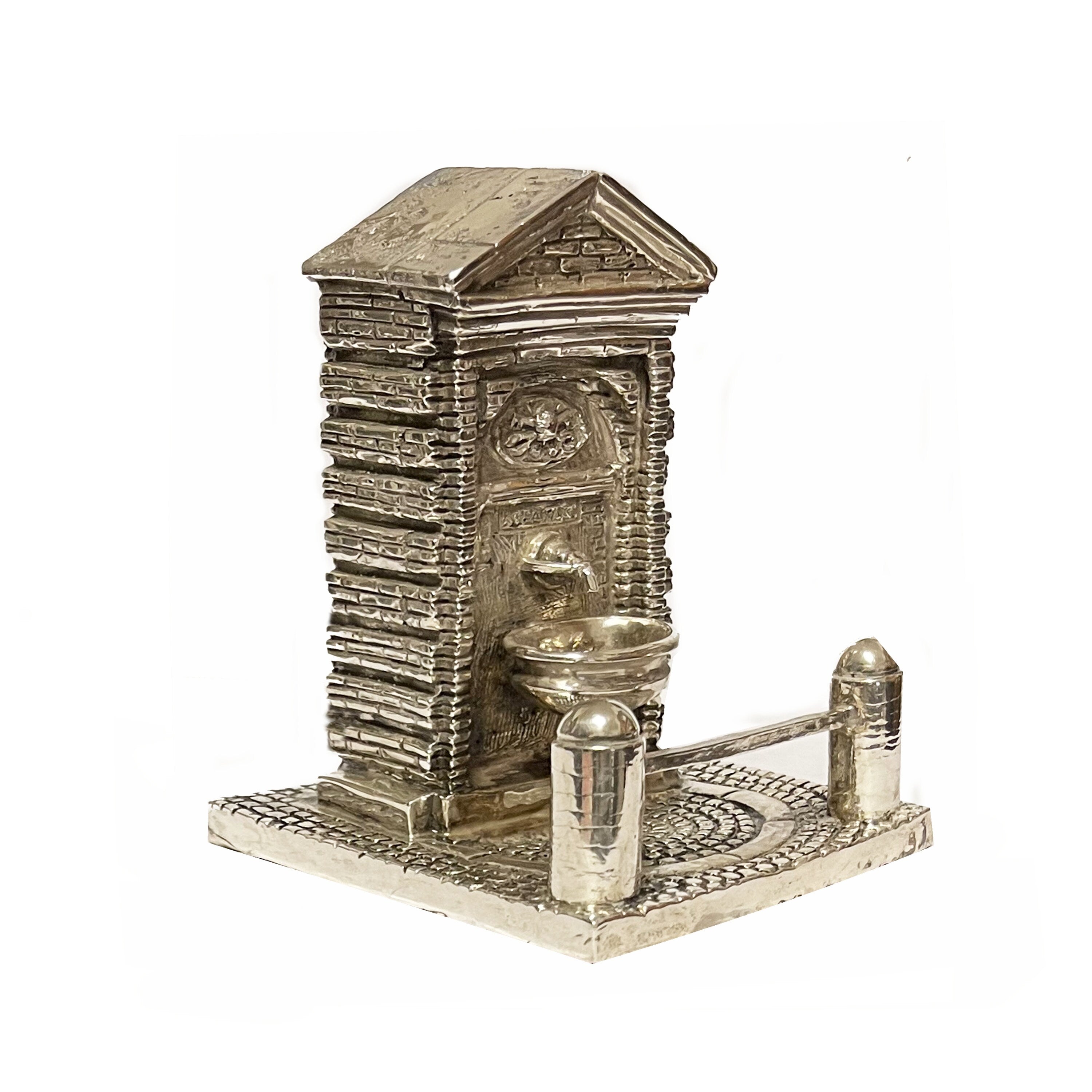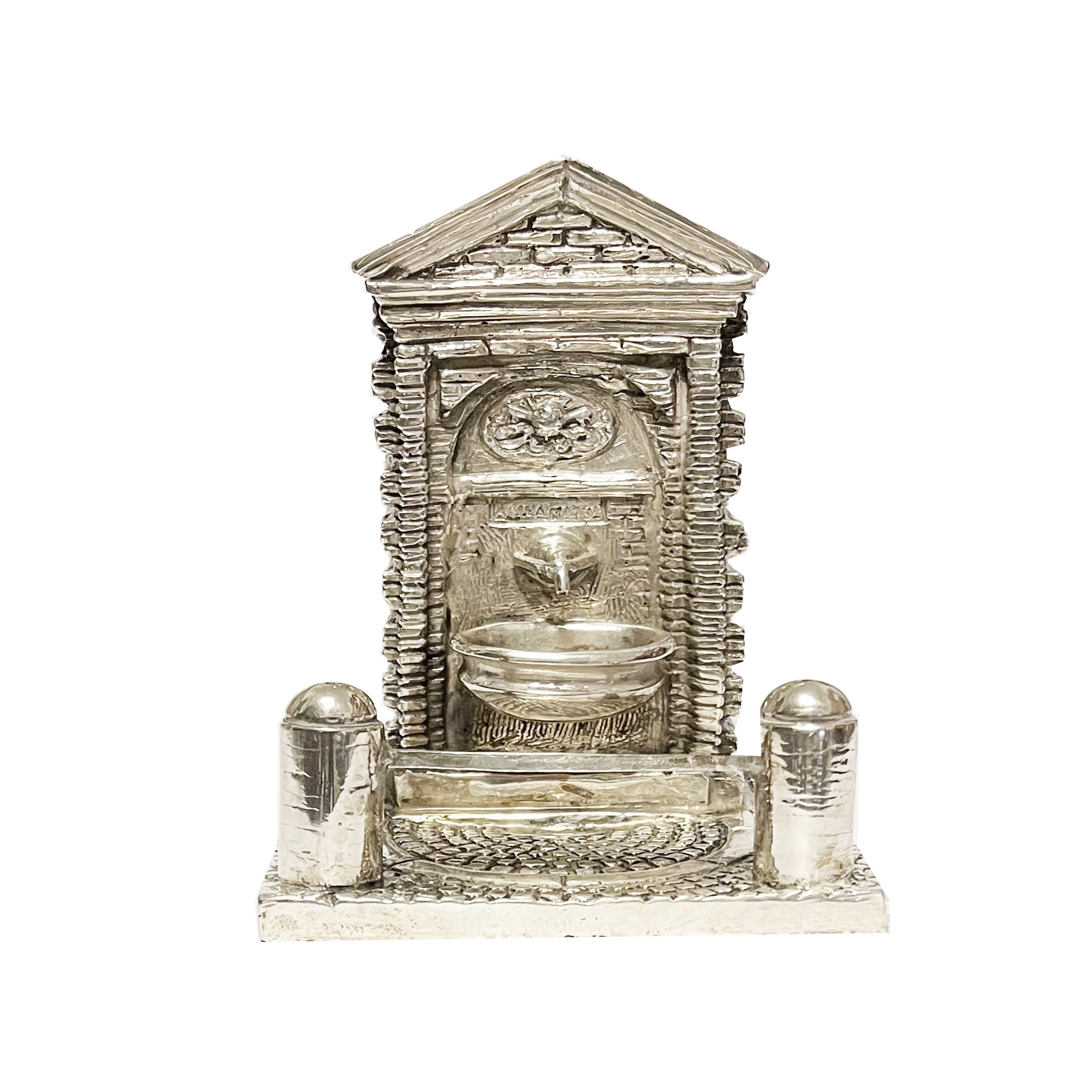 This sterling silver fountain is a replica of the Catalone Fountain, located in Borgo Pio, not far from St. Peter's Square, and was made from a wax made by the artist, painter and sculptor, Foscolo Benedetti.