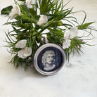 Tommaso Rossi is the talented young artist who creates these exquisite miniature portraits and mythical stories. Working on both marble and hard stone discs, he depicts historical and mythical figures from ancient Greece and Rome, using paints such as enamels, titanium acrylics and graphite. In his amazingly detailed technique, Tommaso employs either an echidna quill or a rose thorn instead of a brush to define the figures on these miniature masterpieces.