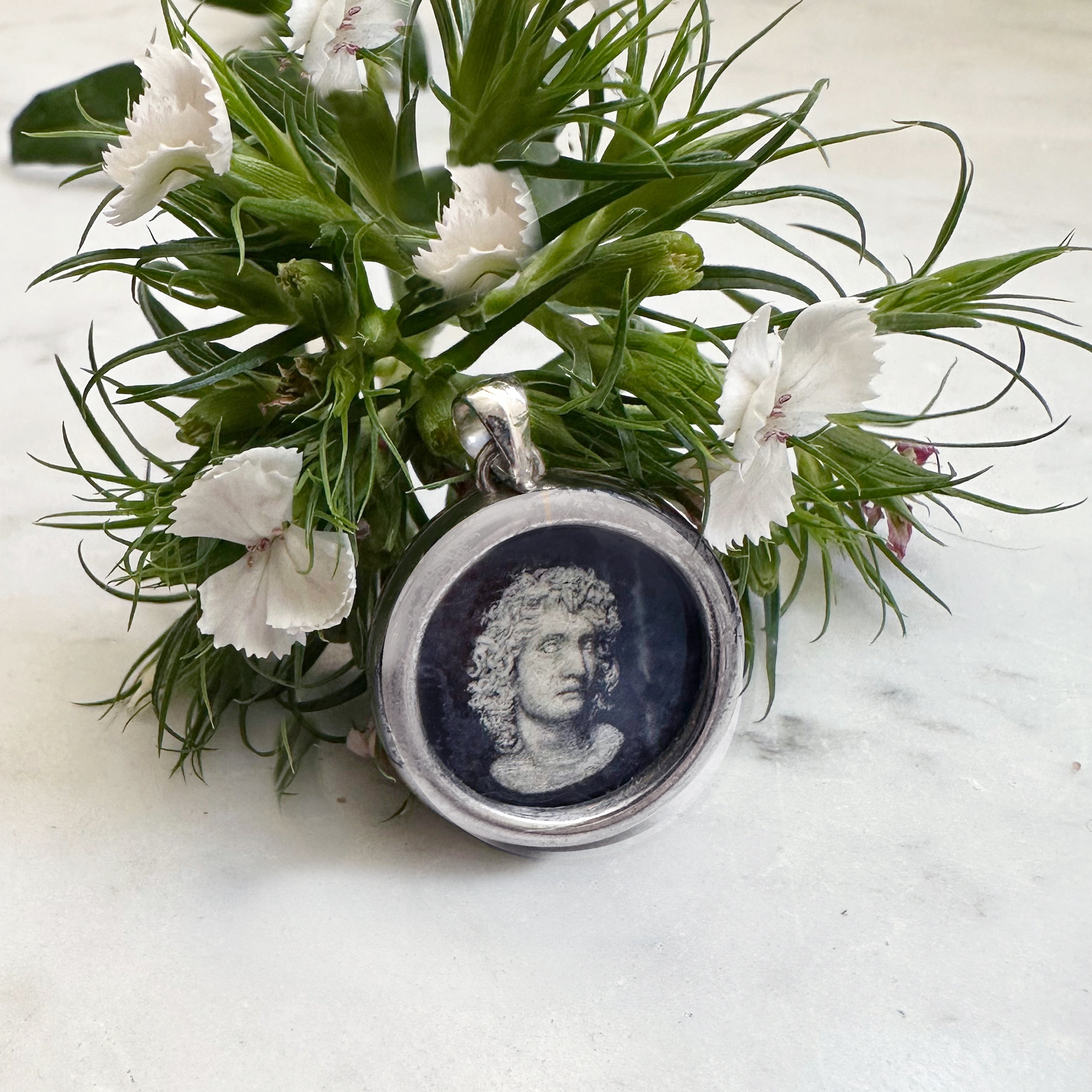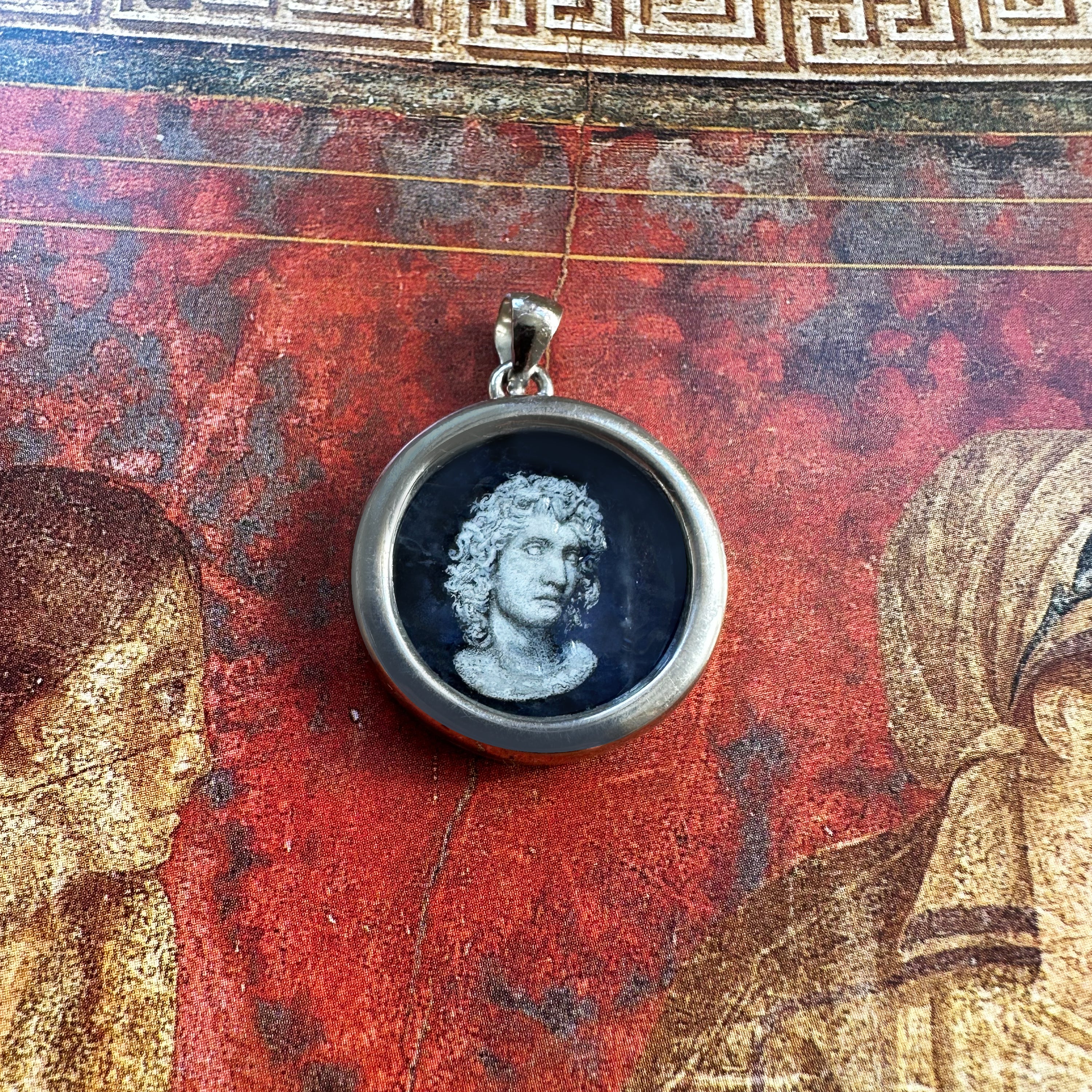 ALEXANDER THE GREAT Hand-Painted Silver Pendant on Onyx