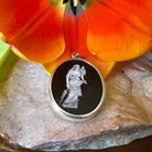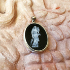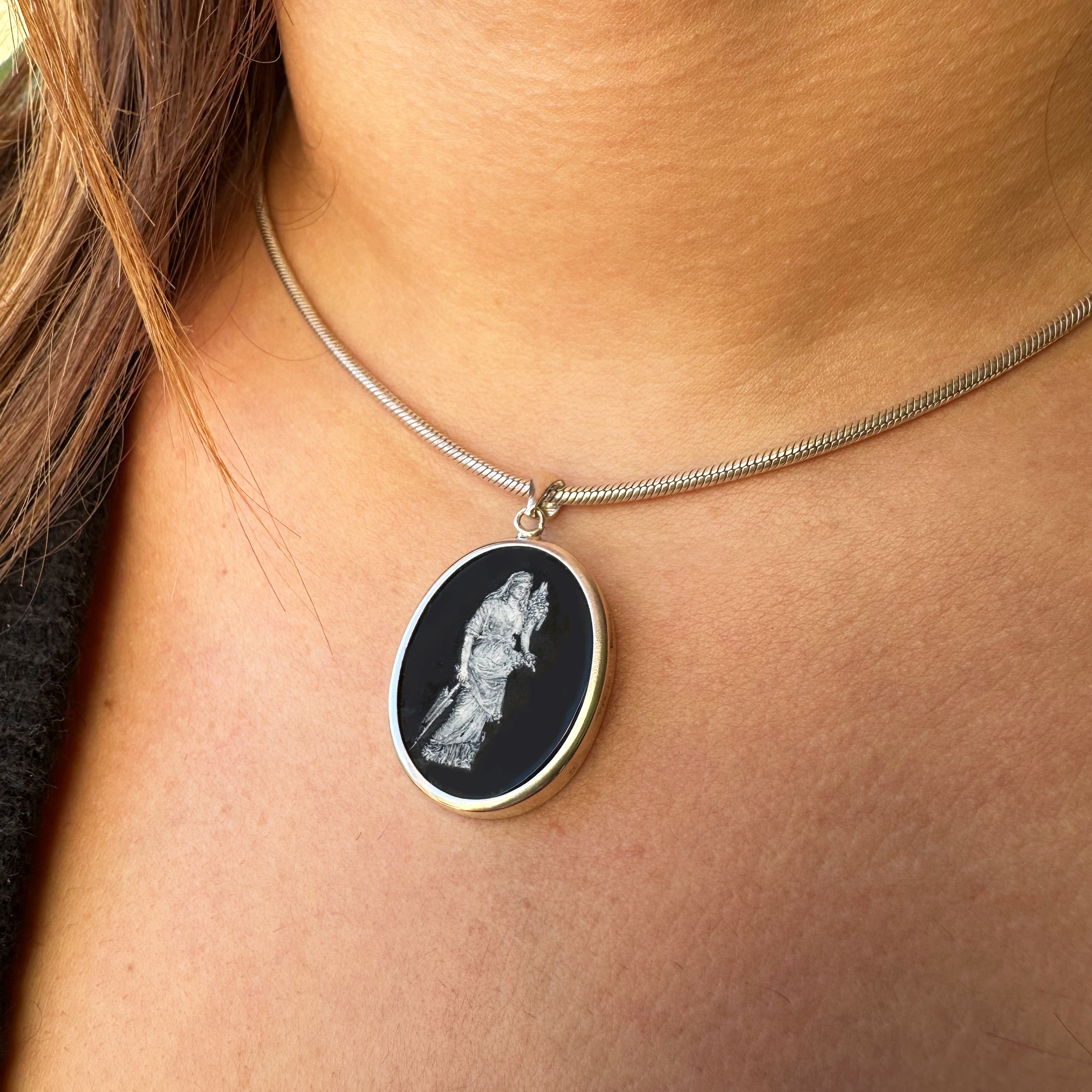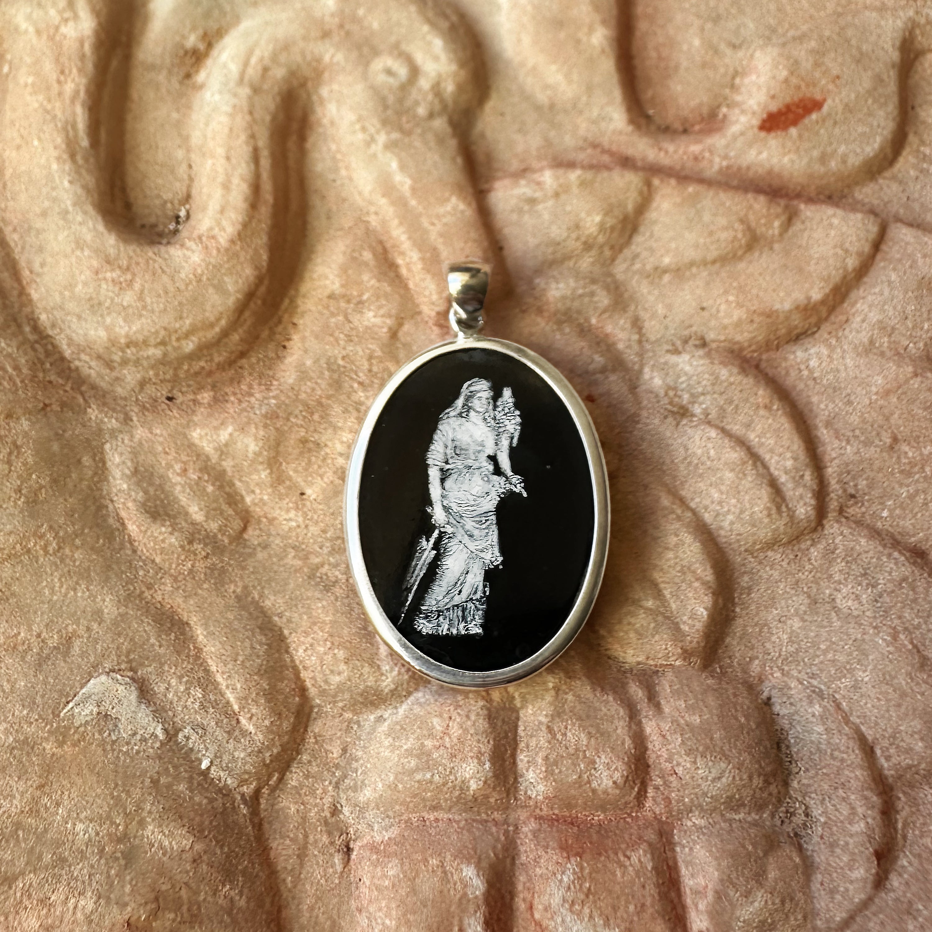 GODDESS FORTUNA Hand-Painted Silver Pendant on Onyx
