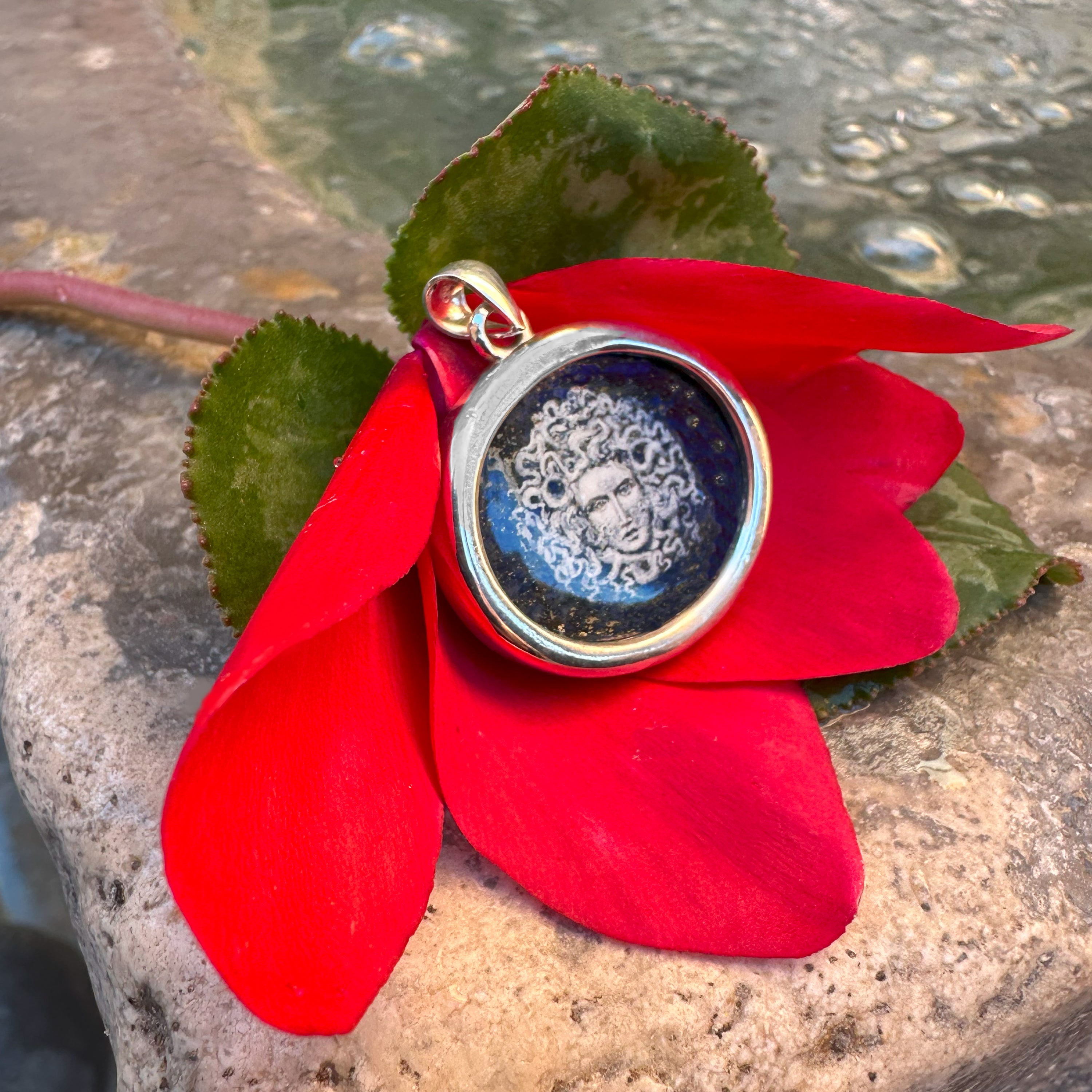 GORGON/MEDUSA Hand-Painted Silver Pendant on Lapis Lazuli