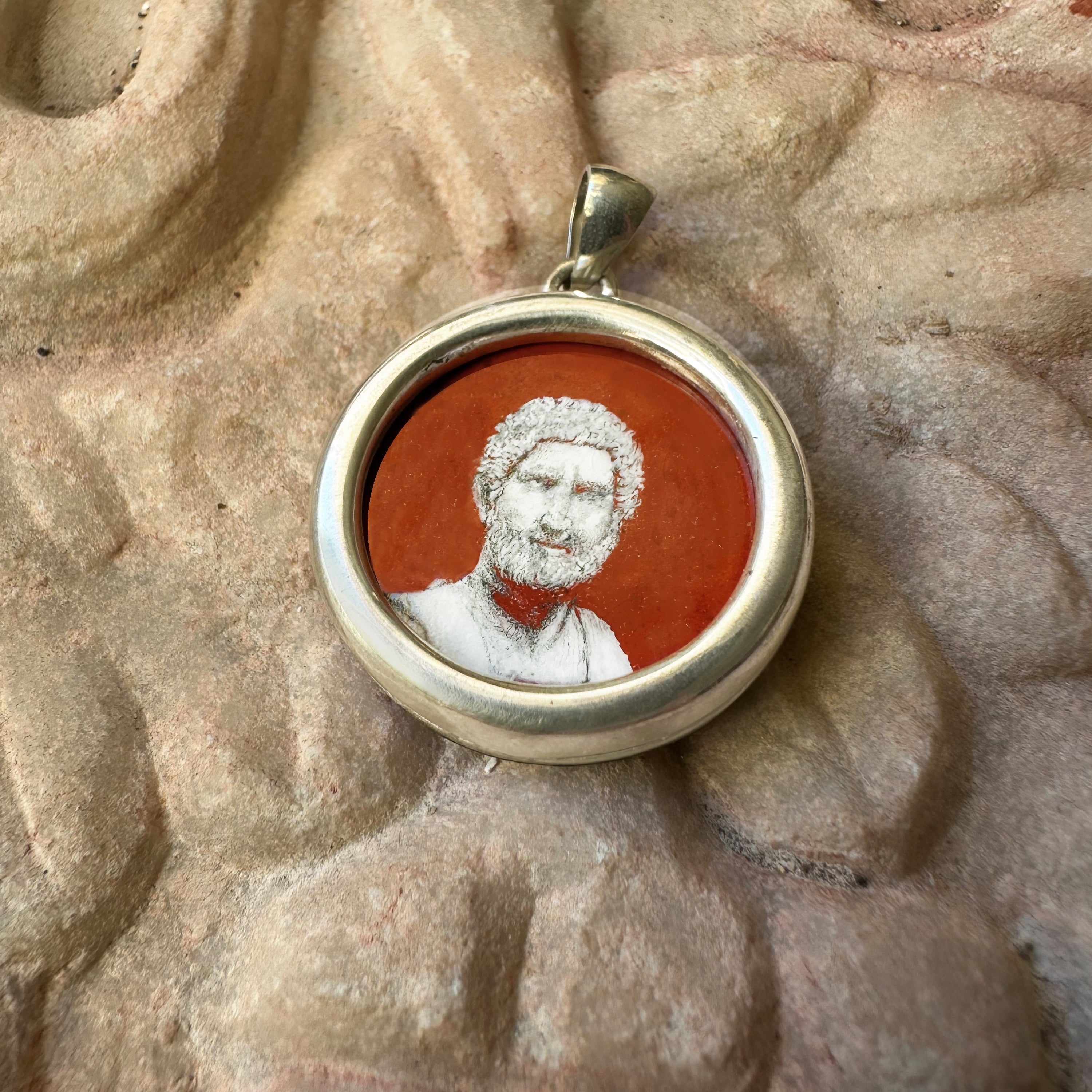EMPEROR HADRIAN Hand-Painted Silver Pendant on Egyptian Jasper