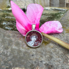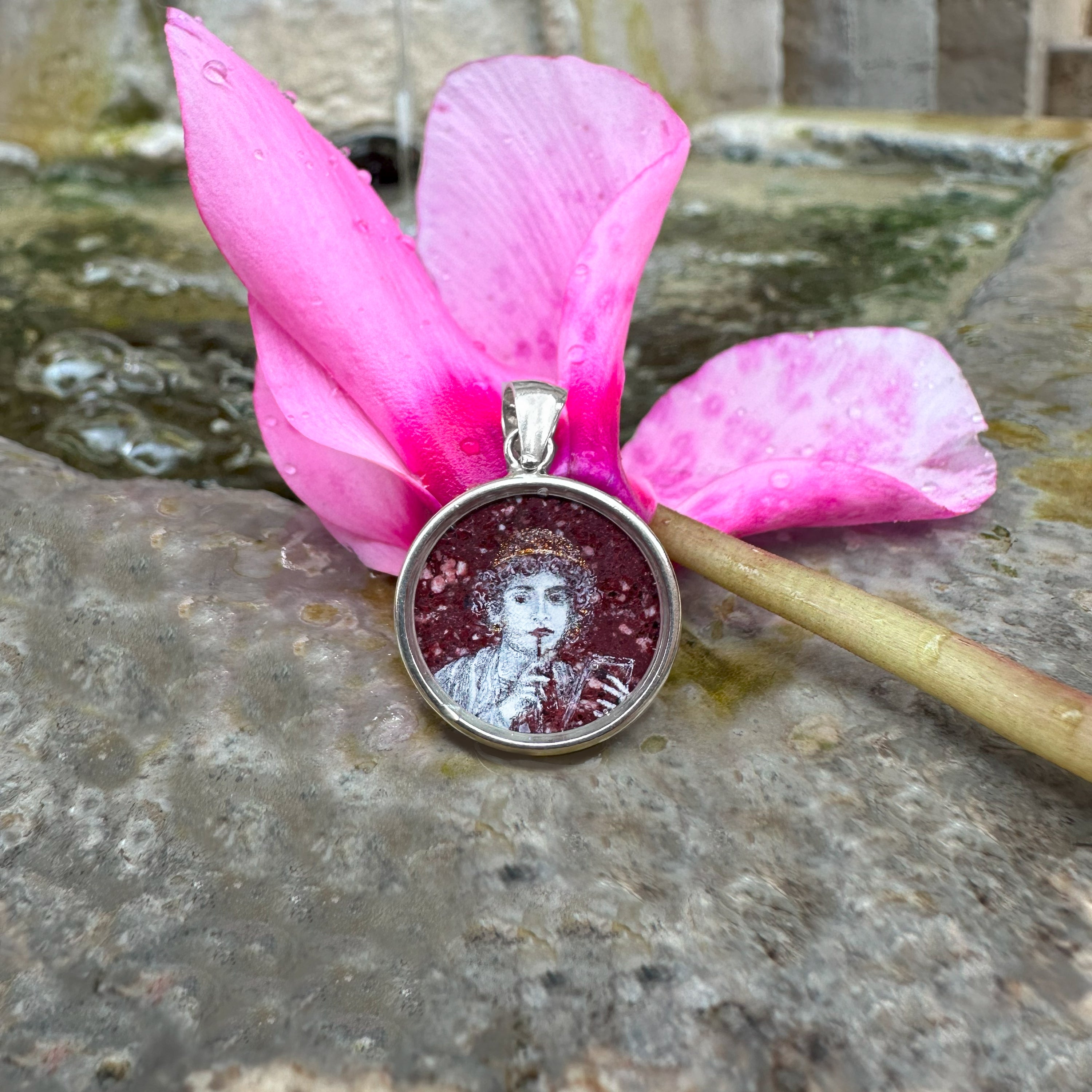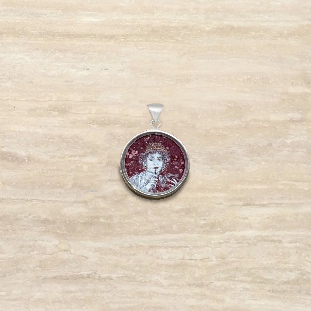 SAPPHO Hand-Painted Silver Pendant on Red Porphyry