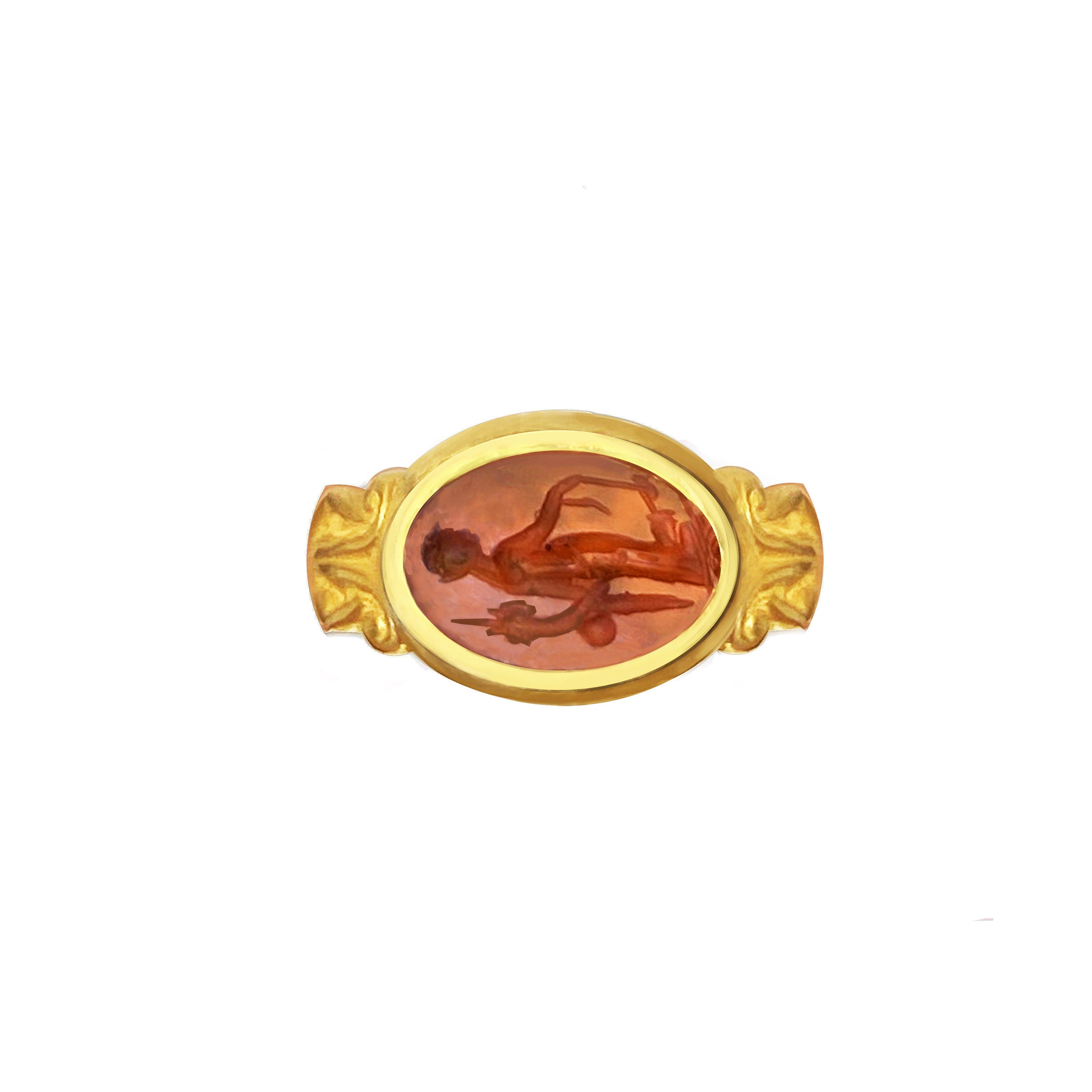 Authentic Roman Carnelian Intaglio 18Kt Gold Ring depicting Goddess Fortune