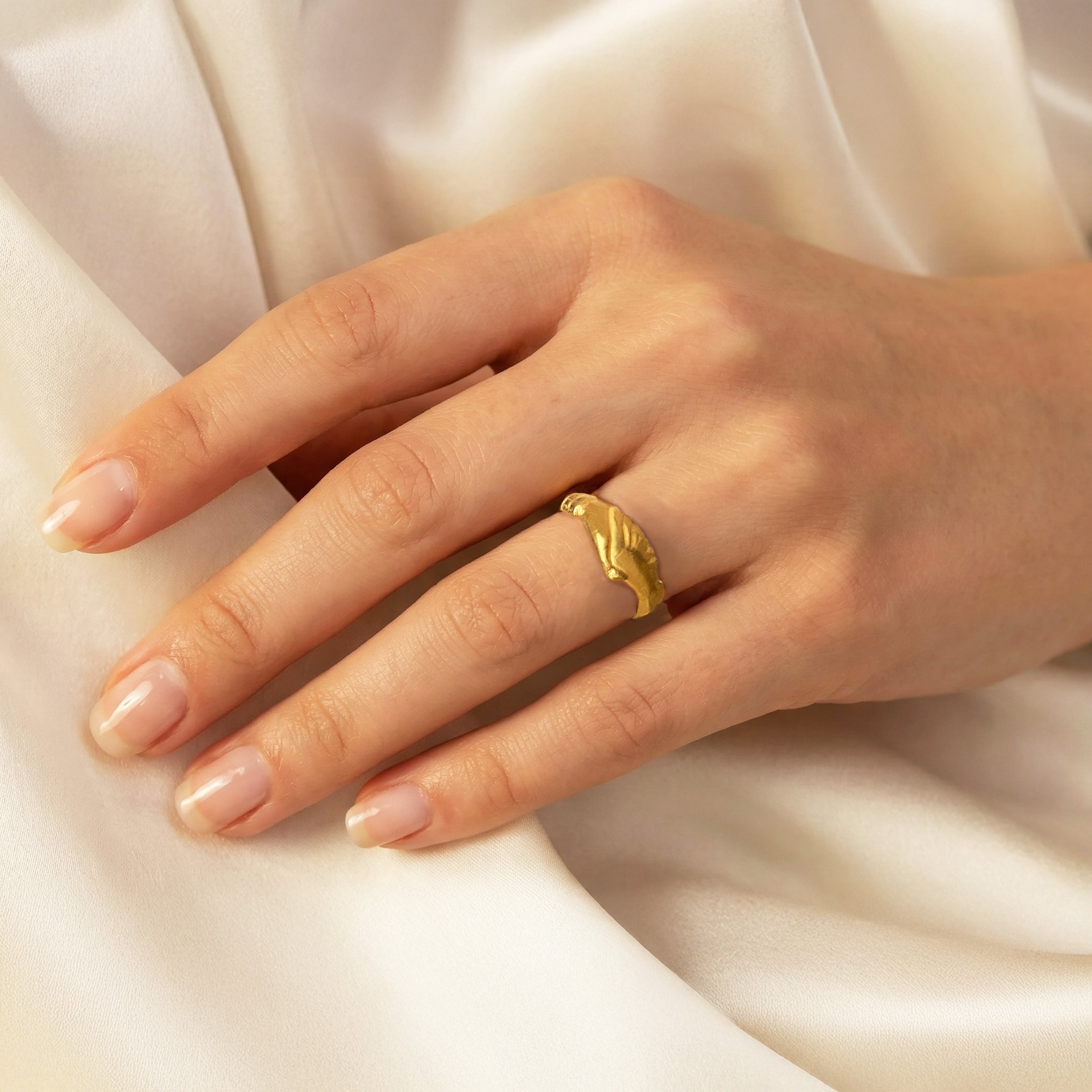 18 Kt Gold Ring depicting the "Dextrarum Iunctio", symbol of Love and Friendship