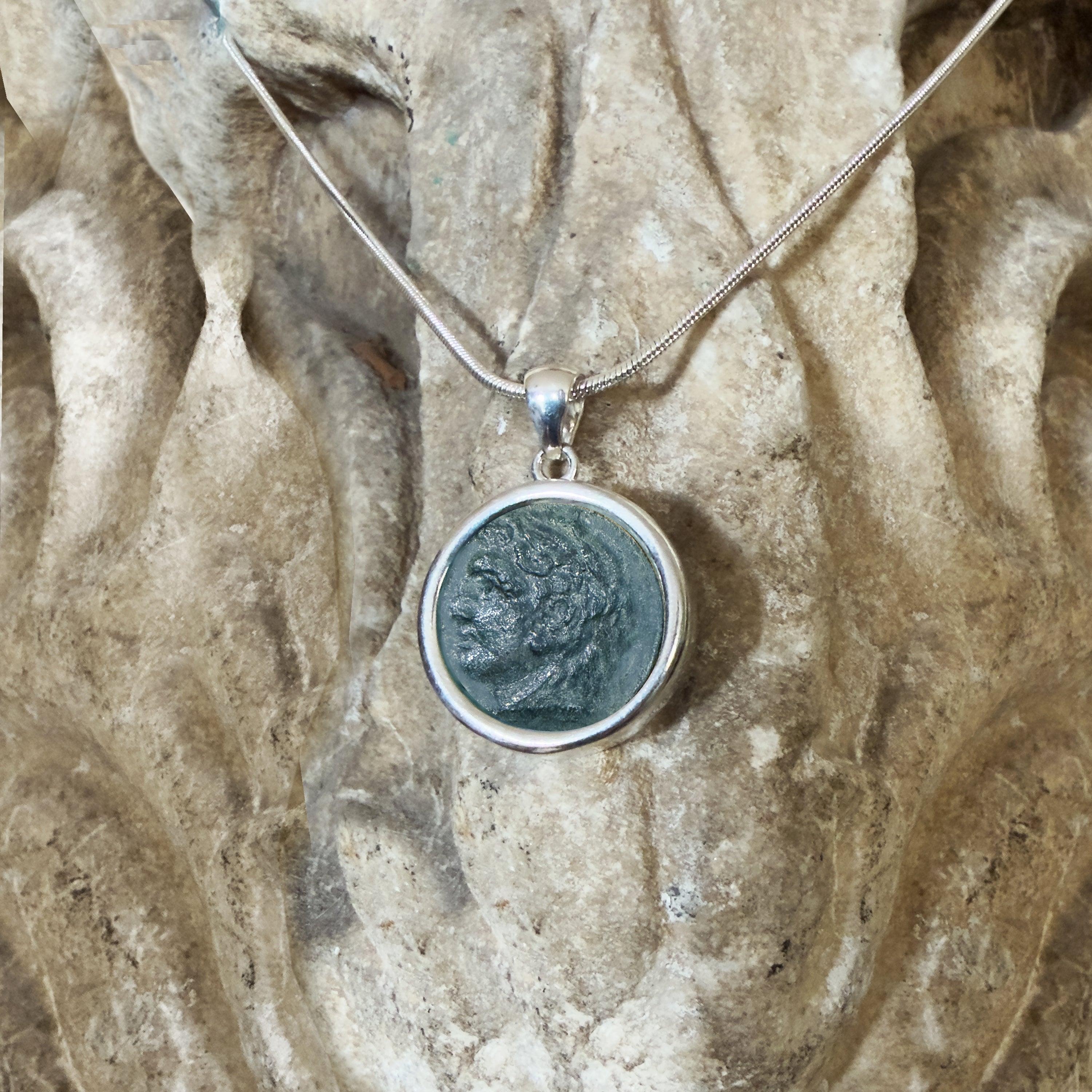 ARIES Genuine Ancient Greek Bronze Coin 1st cent. AD Silver Pendant