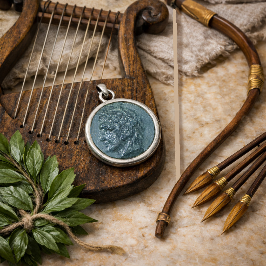 ANTINOUS Hand-Painted Silver Pendant on Lapis Lazuli