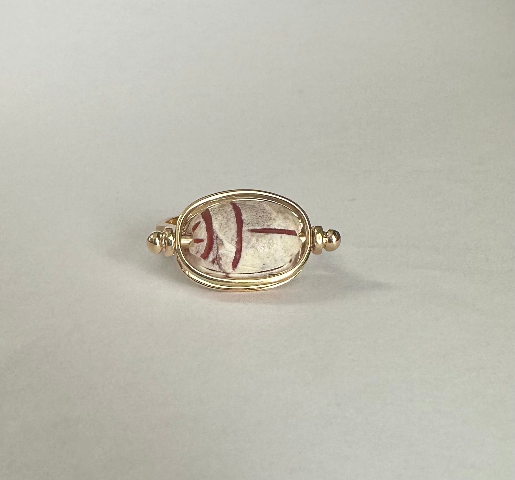 (Private Listing) Scarab carved on burnt carnelian (6th-4th century BC); Sphinx engraved on the flat surface