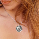 Genuine Greek silver coin pendant depicting the Nymph Arethusa with dolphins; charioteer and Nike on the back