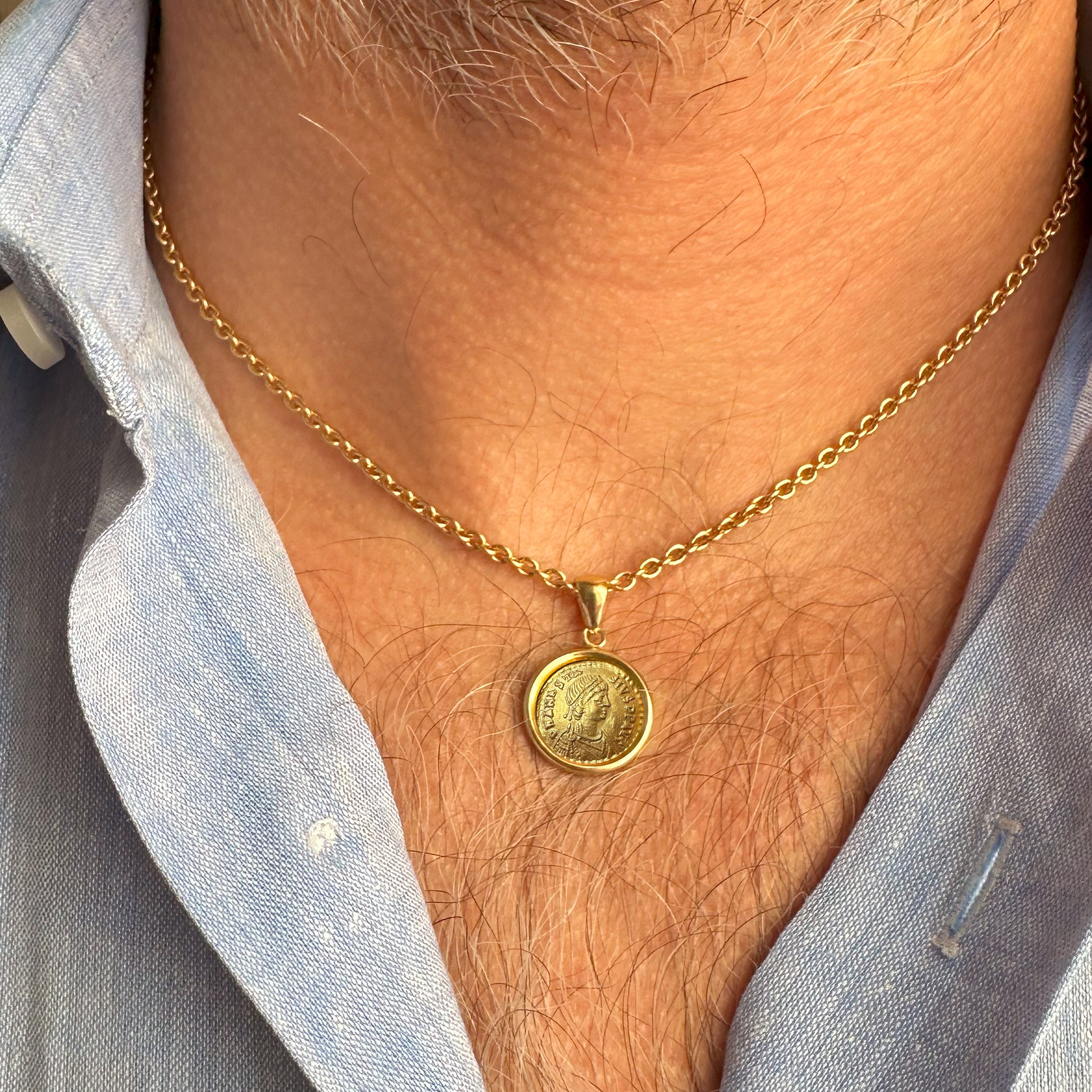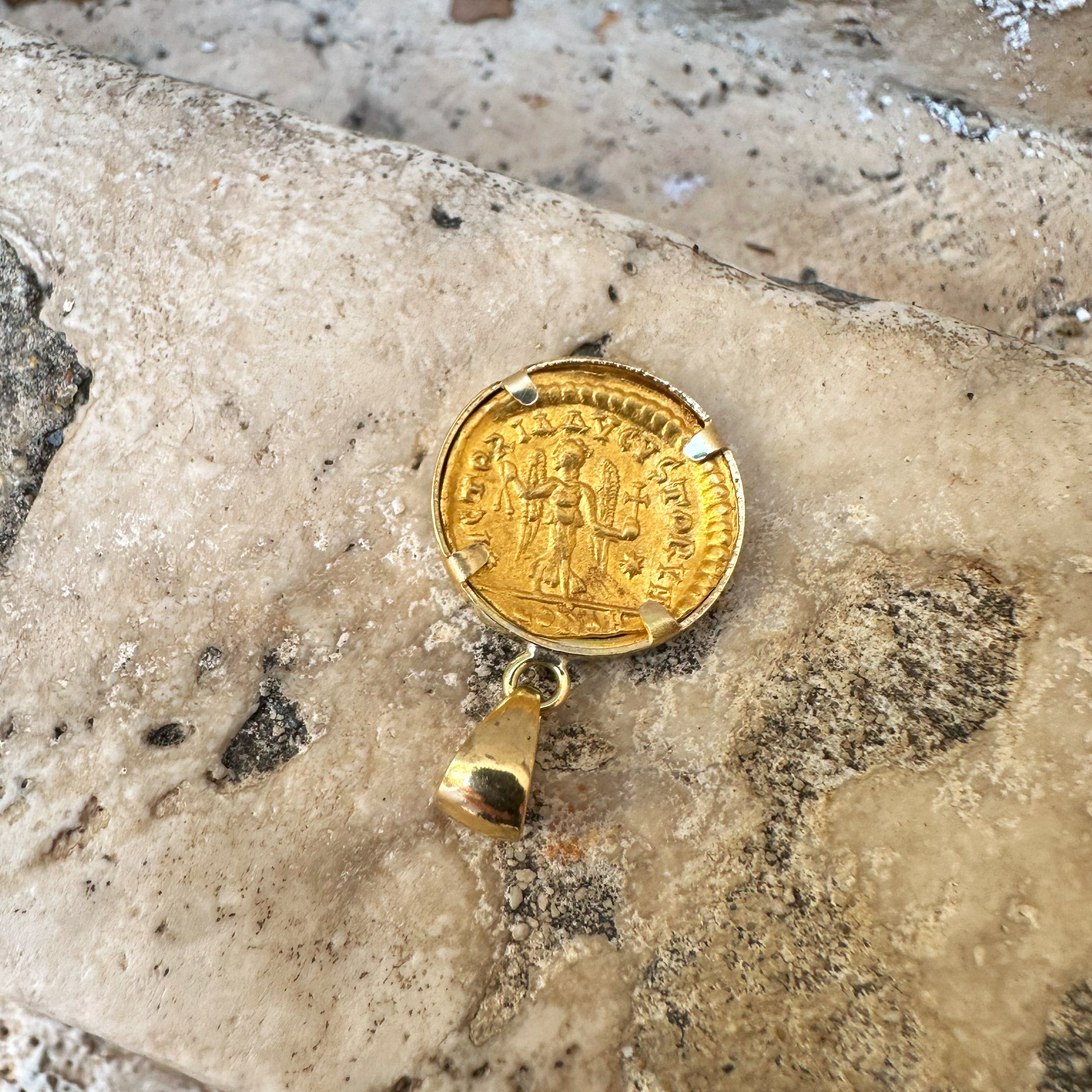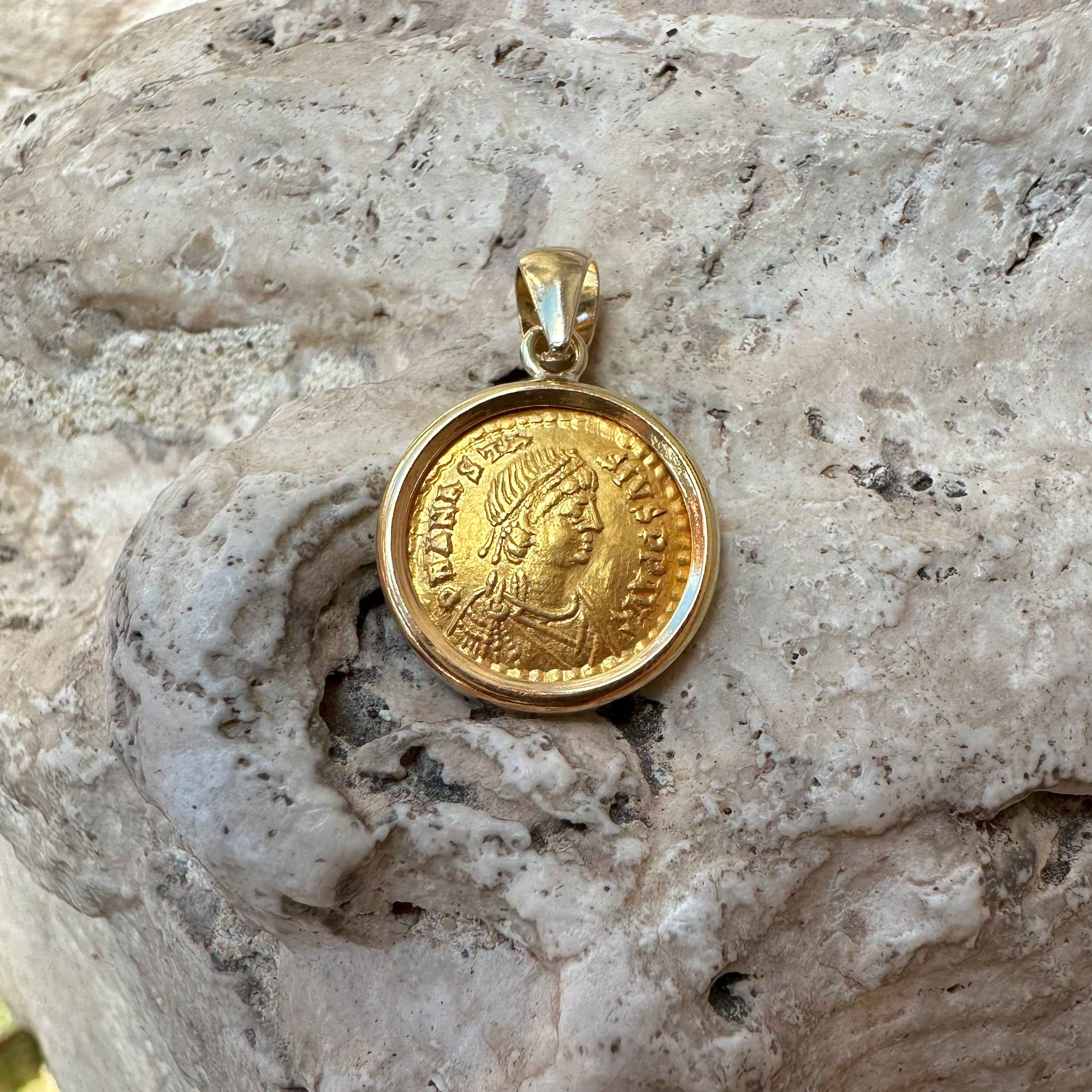 EMPEROR ANASTASIUS I Genuine Ancient Byzantine Gold Coin 5th Cent. AD 18Kt Gold Pendant