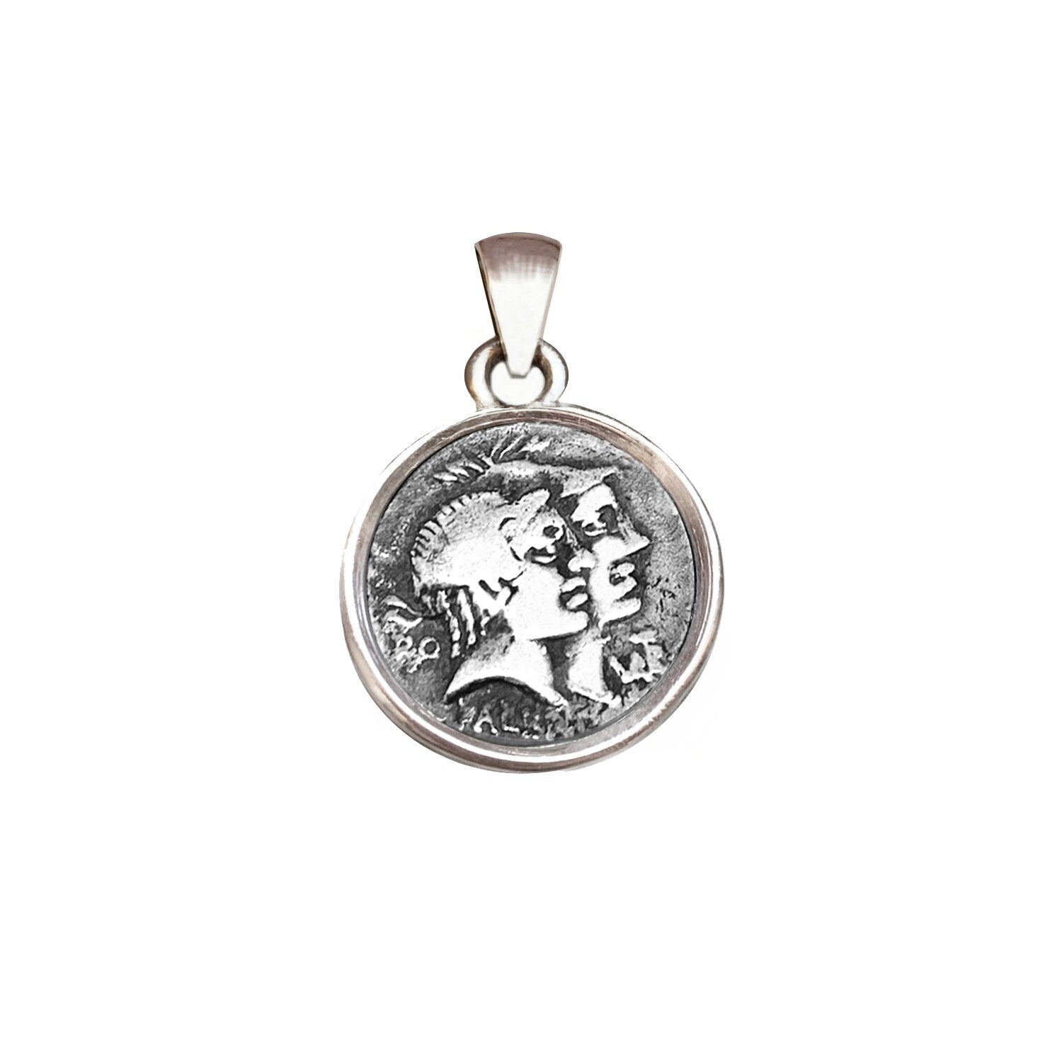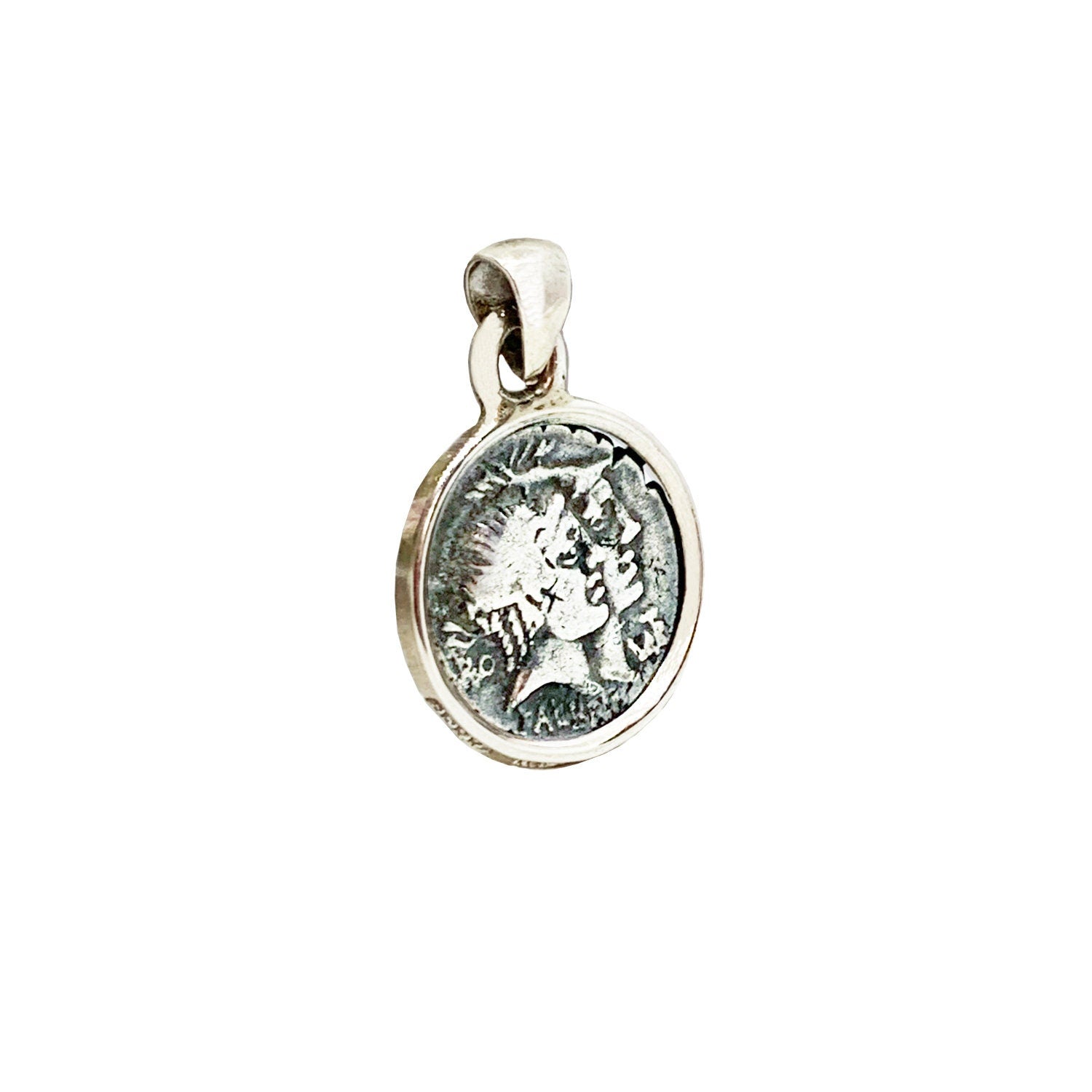 Genuine Ancient Roman Coin 70 BC Silver Pendant depicting Honos and Virtus