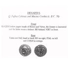 This pendant showcases a genuine Roman coin dating back to 70 B.C. This remarkable coin depicts the combined representation of Honos and Virtus, two significant figures in Roman mythology and culture.