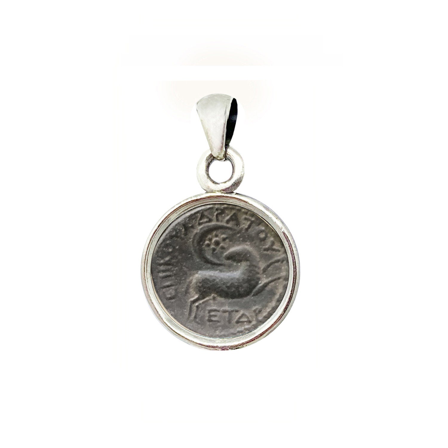 ARIES Genuine Ancient Greek Bronze Coin 1st cent. AD Silver Pendant