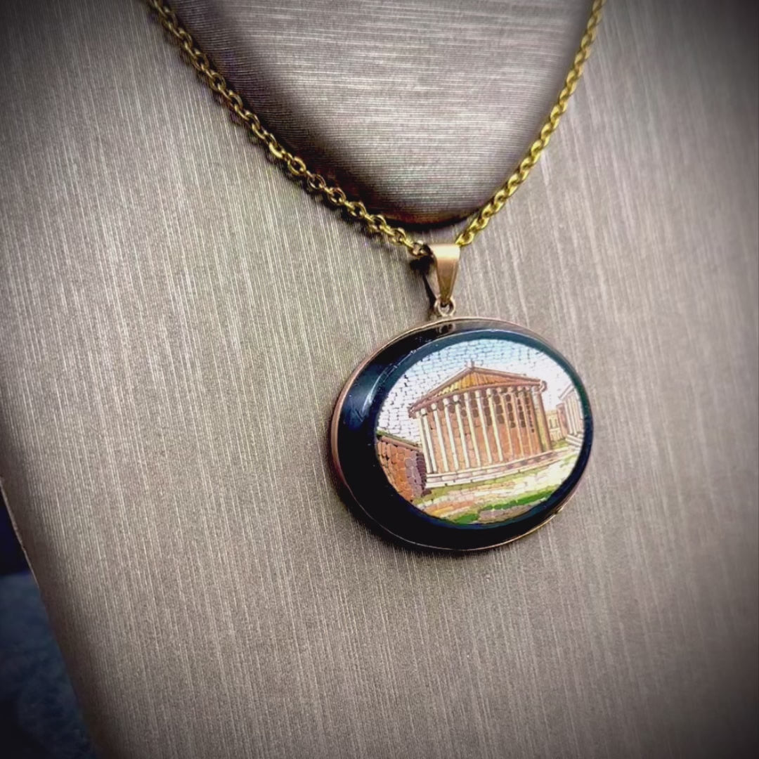Pendentif en micromosaïque « vers 1850 » représentant le temple de Vesta, Rome