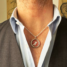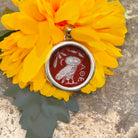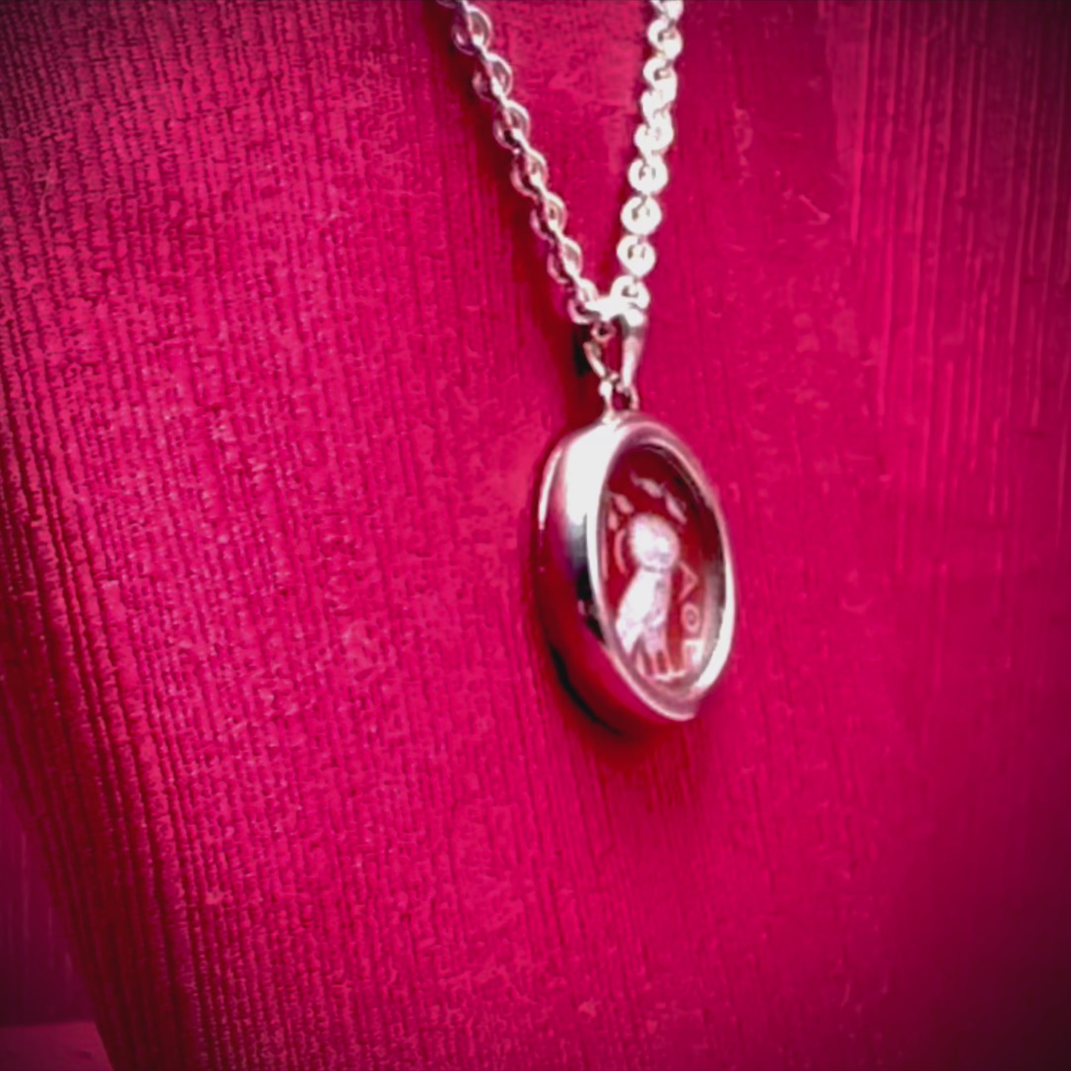 This pendant showcases a hand-painted image of Athena's Owl, masterfully rendered by the artist Tommaso Rossi on Egyptian Jasper. Known for its rich earthy tones and swirling natural patterns, Egyptian Jasper adds warmth and organic elegance to the piece. Set in solid silver, the pendant beautifully balances ancient symbolism with refined artistry, making the owl—a timeless emblem of wisdom and knowledge—stand out with striking clarity.