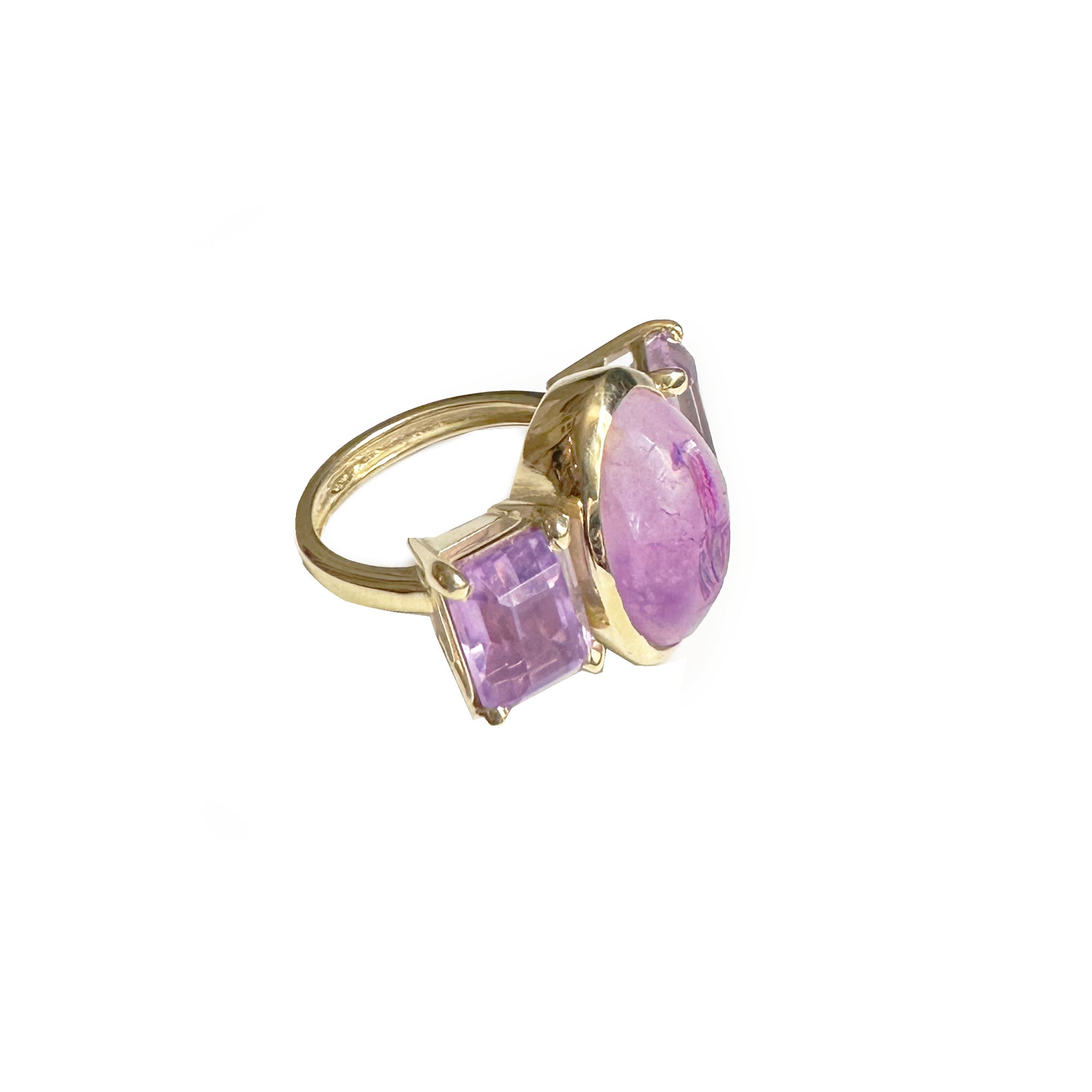 Bague en or 18 carats avec intaille romaine antique authentique du 1er au 2e siècle après J.-C. sur améthyste représentant un phallus ailé