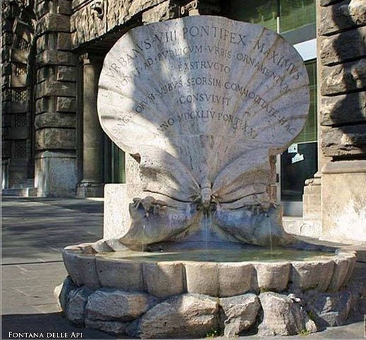 La fontaine des Api est constituée d'une coquille en marbre à deux valves sur laquelle reposent trois abeilles du même matériau. La fontaine était destinée à servir d'abreuvoir pour les chevaux. Une inscription sur la coquille dit : « Urbain VIII Pont. Max., ayant construit une fontaine pour l'ornementation publique de la ville, a également construit cette petite fontaine pour servir aux citoyens privés. En l'an 1644, XXI de son pontificat. » L'« ornementation publique » à laquelle fait référence l'inscription est la fontaine du Triton, que Bernini avait achevée l'année précédente.