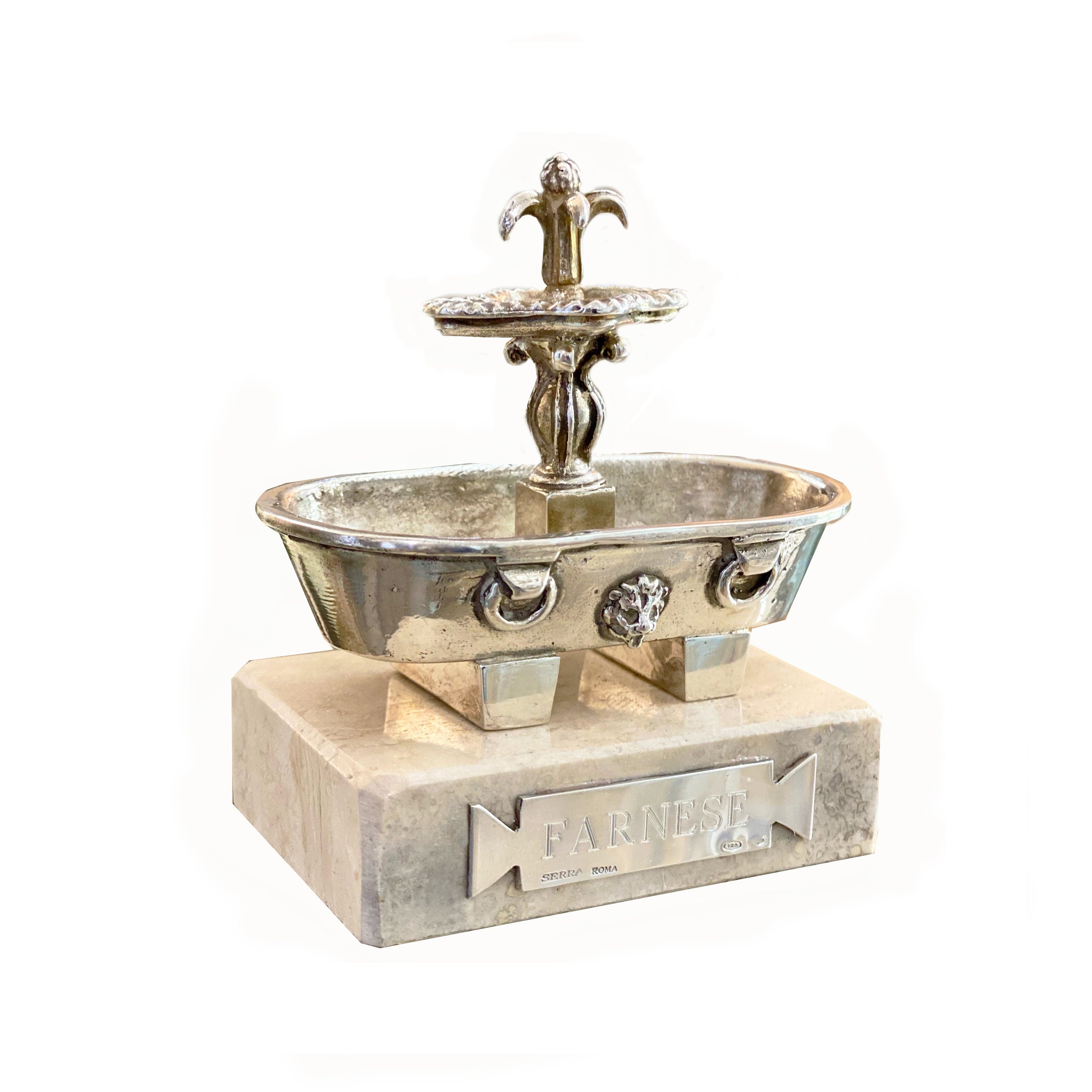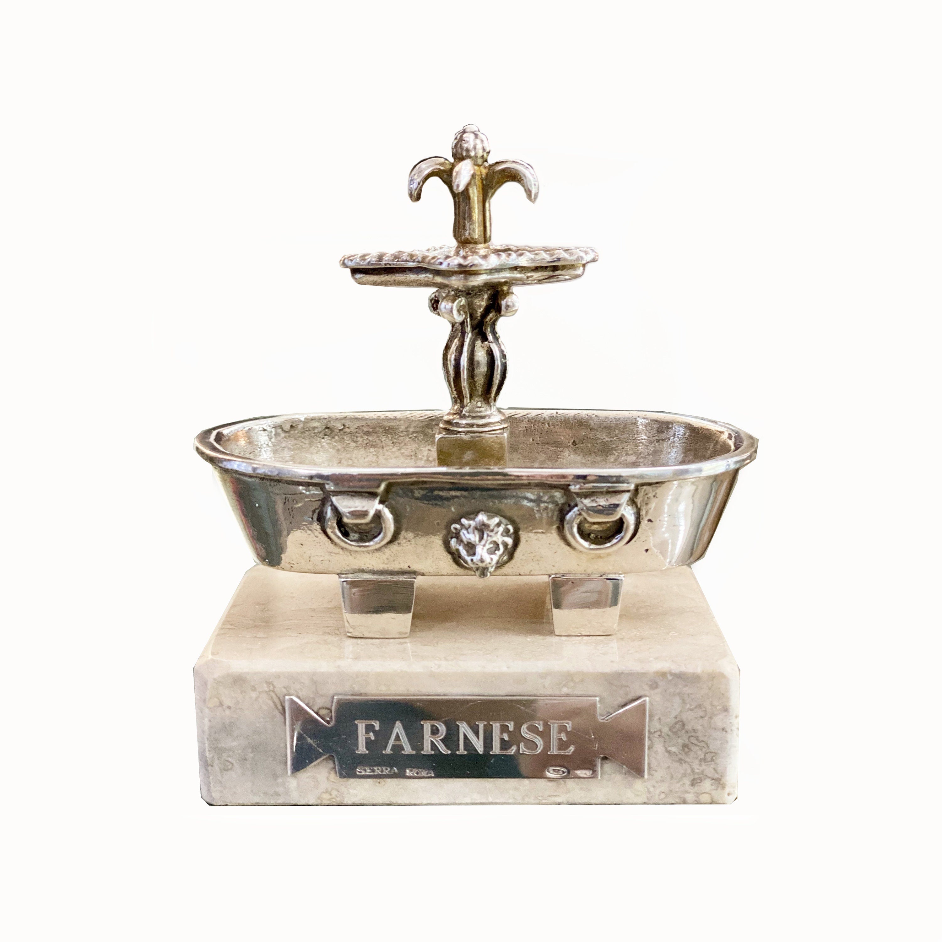 Cette reproduction en argent sterling d'une des fontaines jumelles de la place Farnèse fait partie de la collection Serra des "Fontaines et monuments de Rome", une série de modèles datant du siècle dernier, exclusifs à notre boutique, que nous reproduisons dans de nombreuses tailles différentes.