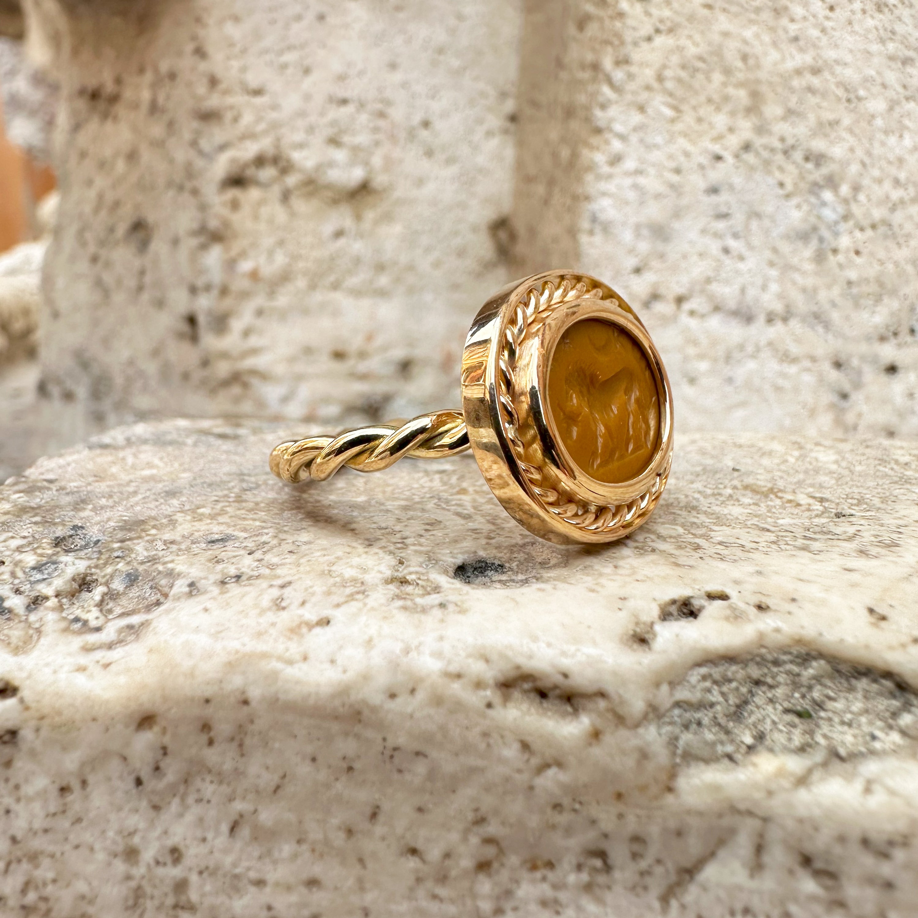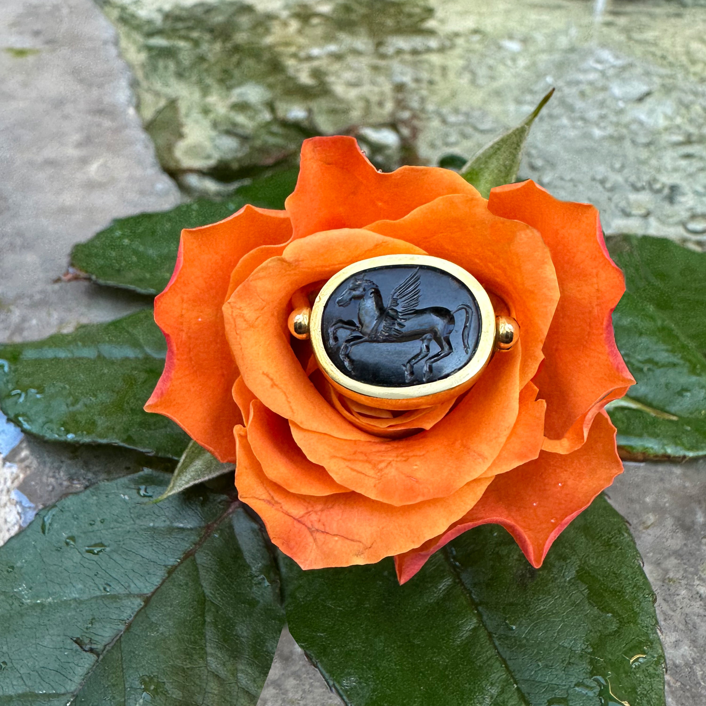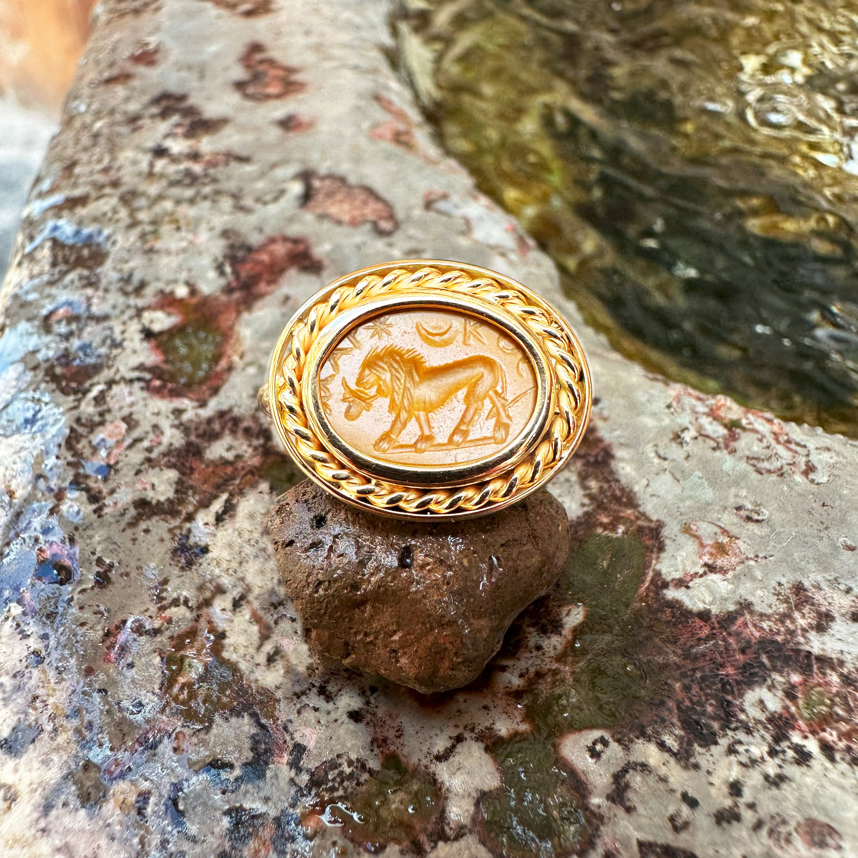 La glittica, l'arte di incidere pietre preziose, semipreziose e paste vitree, era molto apprezzata in epoca romana e ampiamente utilizzata in gioielli come anelli, collane, braccialetti e orecchini sia per uomini che per donne. Abili incisori lavoravano sugli intagli romani, scegliendo quasi sempre tra temi mitologici o allegorici. Quest'arte "minuta ma non minore" era molto apprezzata dai romani e continua ad essere celebrata nella squisita collezione di gioielli del nostro marchio che rende omaggio a questa antica tradizione.