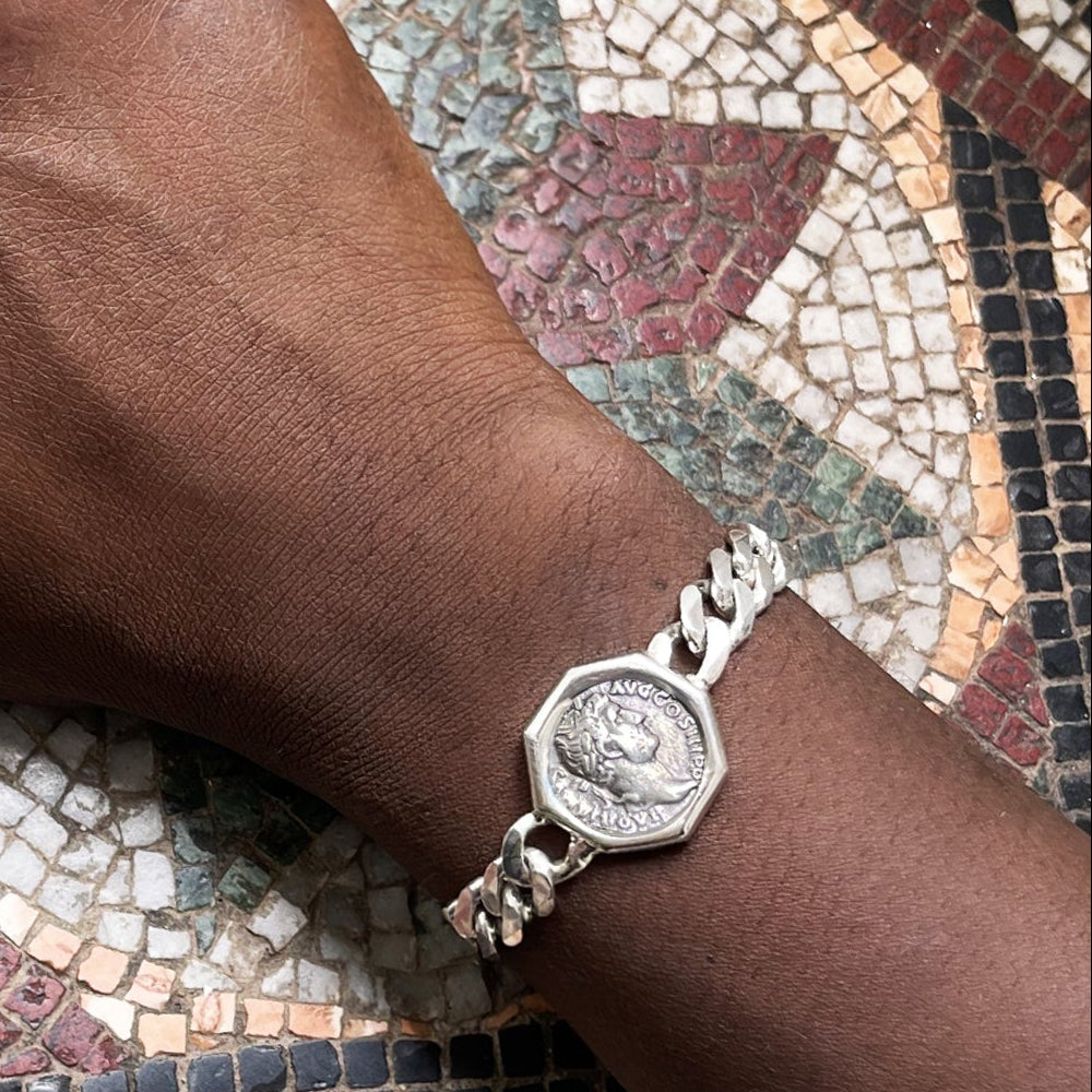 La pratica di incastonare monete per creare gioielli risale al mondo greco e si diffuse a Roma dal I al III secolo d.C. I romani credevano nei poteri talismanici dei gioielli e valutavano le monete come amuleti, conferendo loro un valore e un'utilità più elevati. Nel nostro marchio continuiamo questa antica tradizione creando pezzi unici di gioielleria che onorano la ricca storia di Roma e servono come simboli di significato personale per coloro che li indossano.