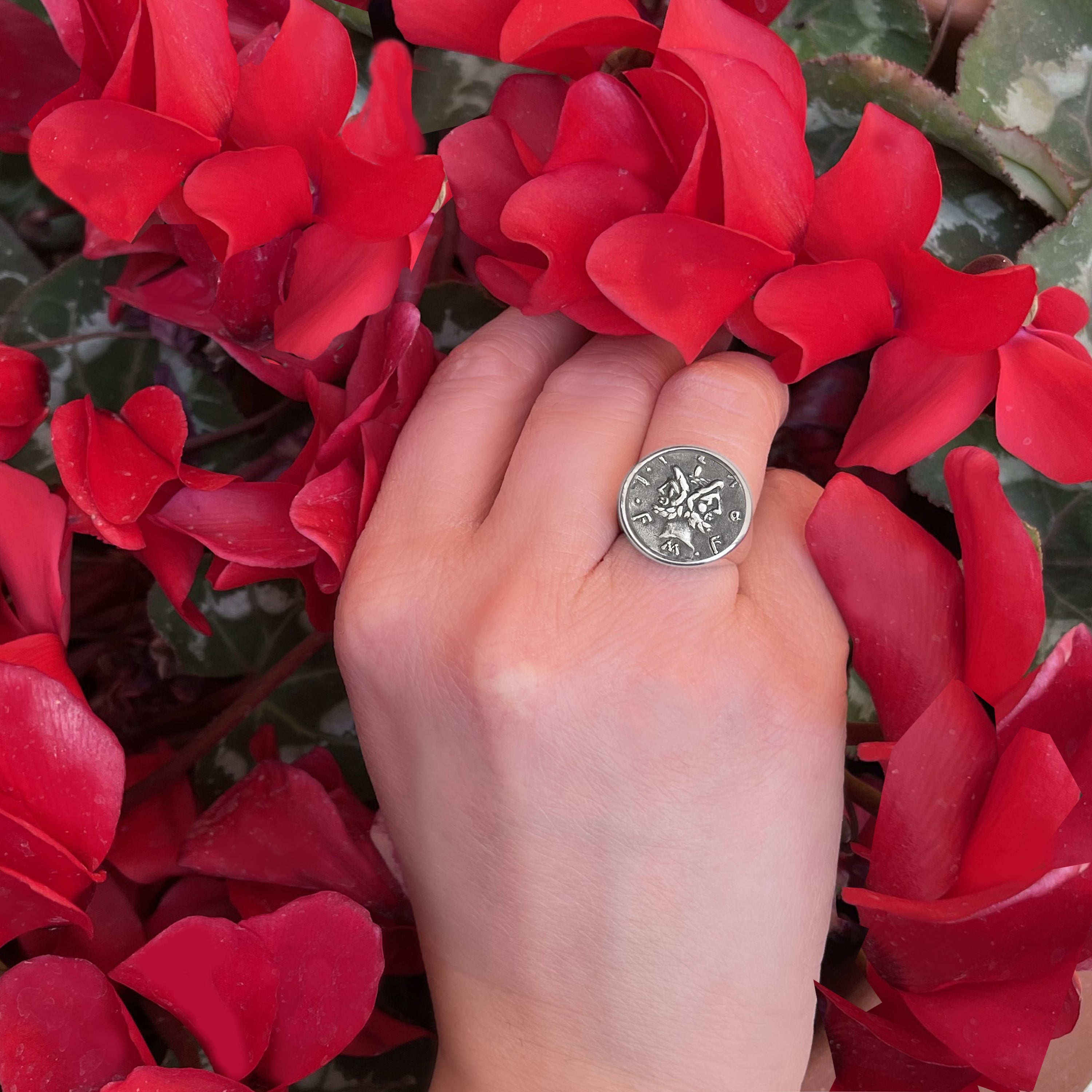 Entra in un regno dove l'antica Roma incontra l'eleganza moderna con i nostri incantevoli anelli Serra. Caratterizzati da autentiche monete romane delicatamente abbracciate in impostazioni in oro giallo 18kt o argento sterling 925, questi pezzi sono più di semplici gioielli: sono racconti affascinanti di storia e stile, intrecciati in ogni sguardo.