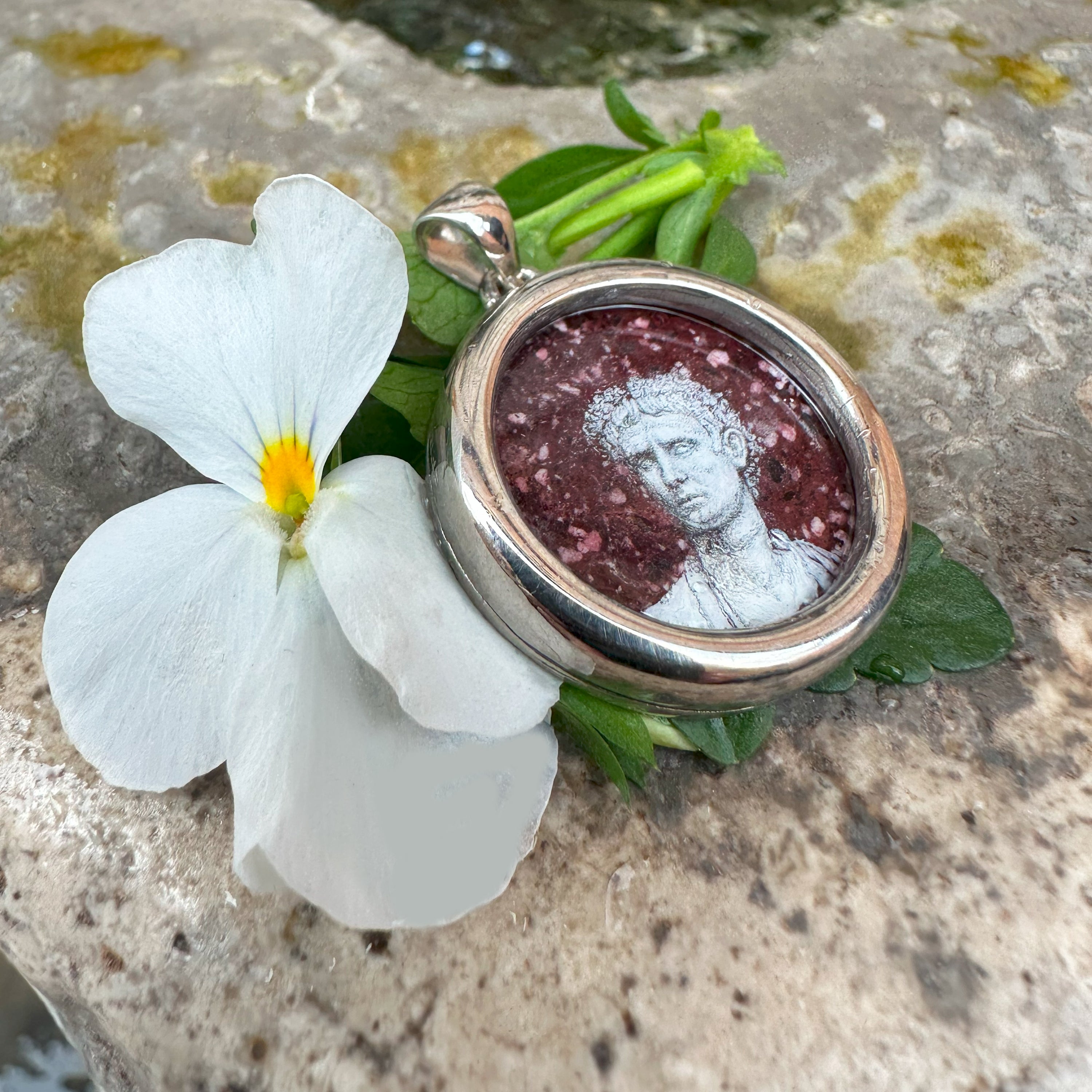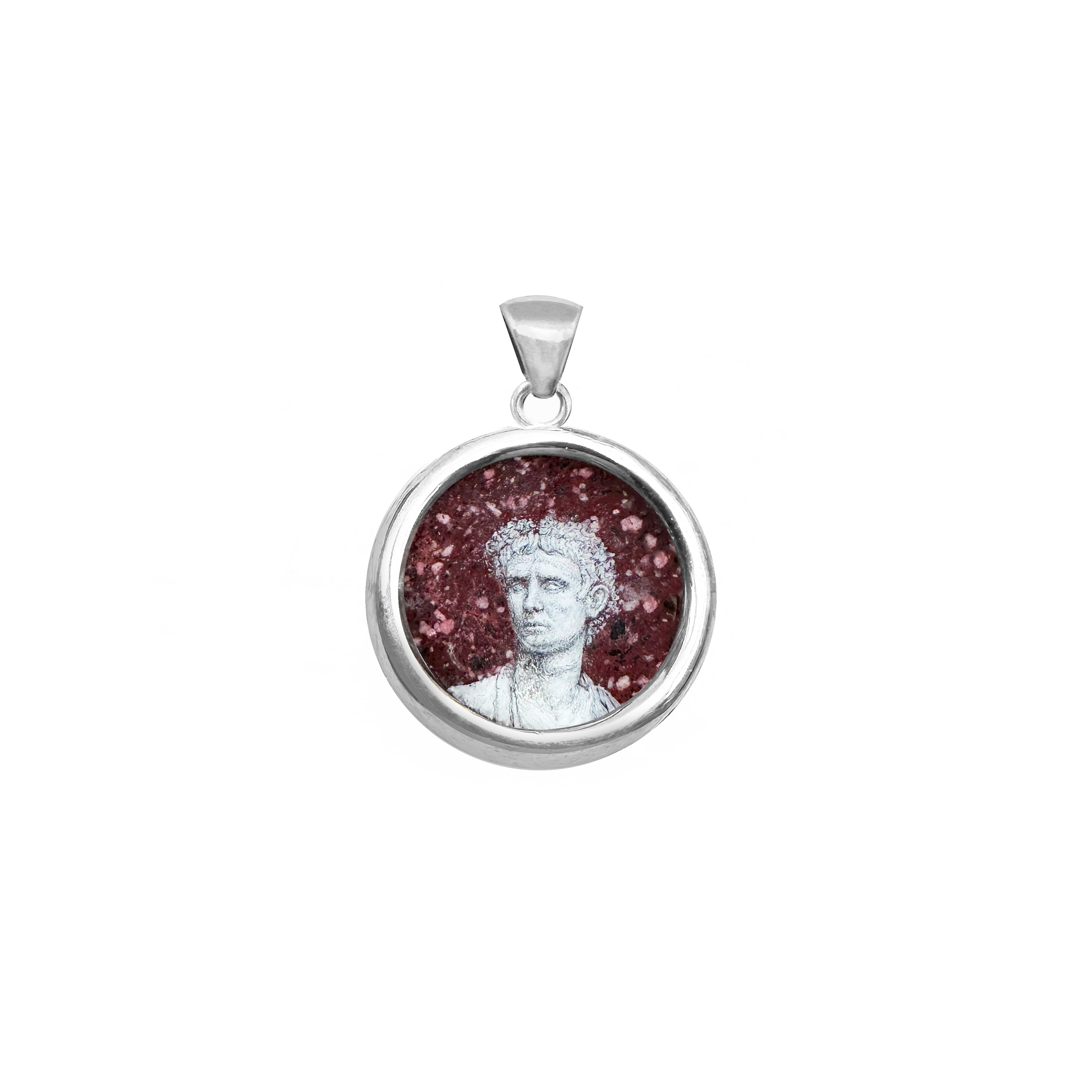 Ciondolo in argento dipinto a mano AUGUSTO su porfido rosso