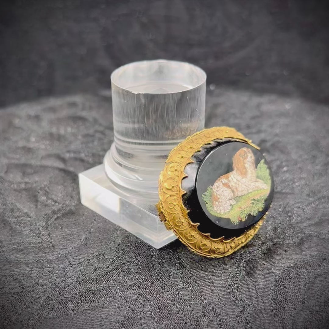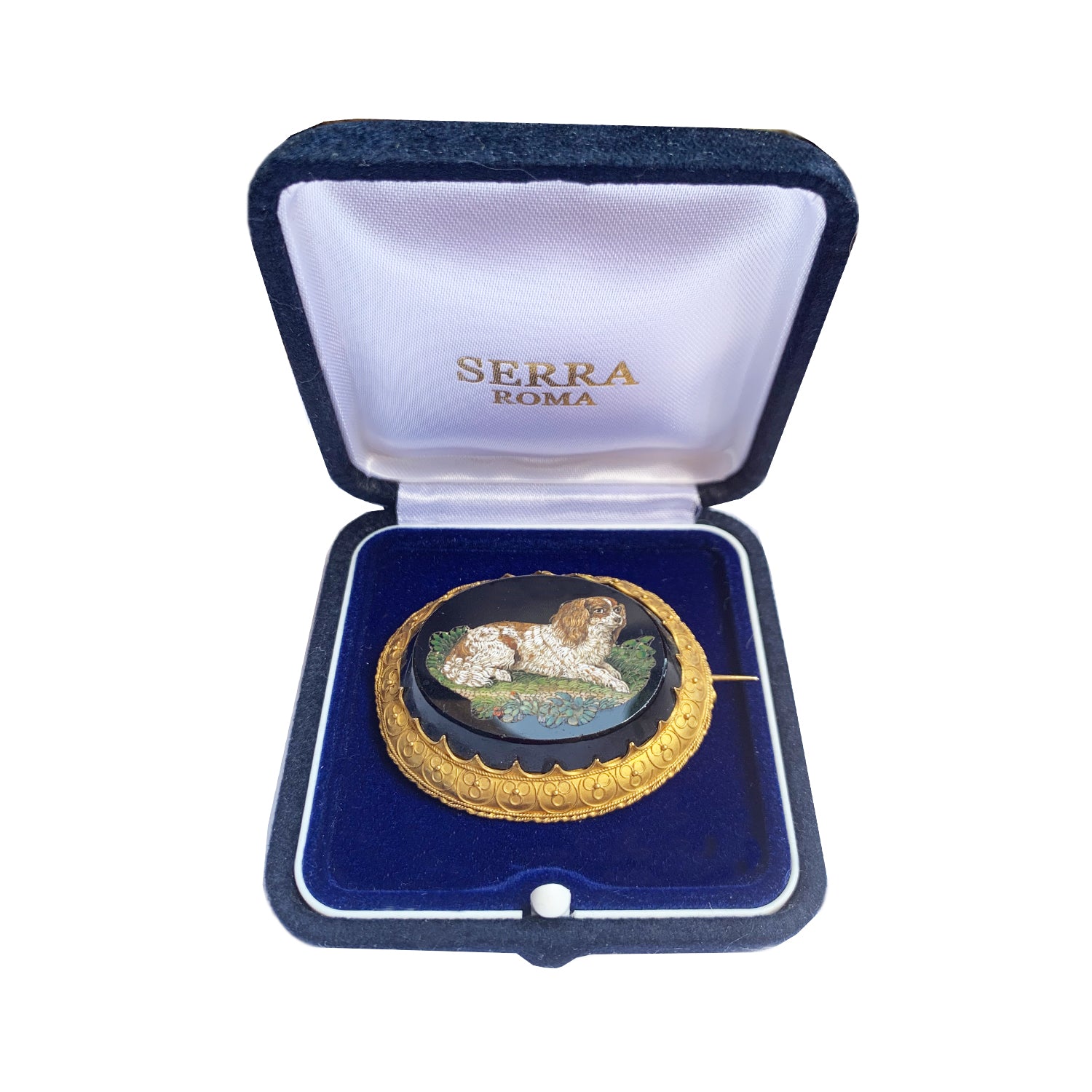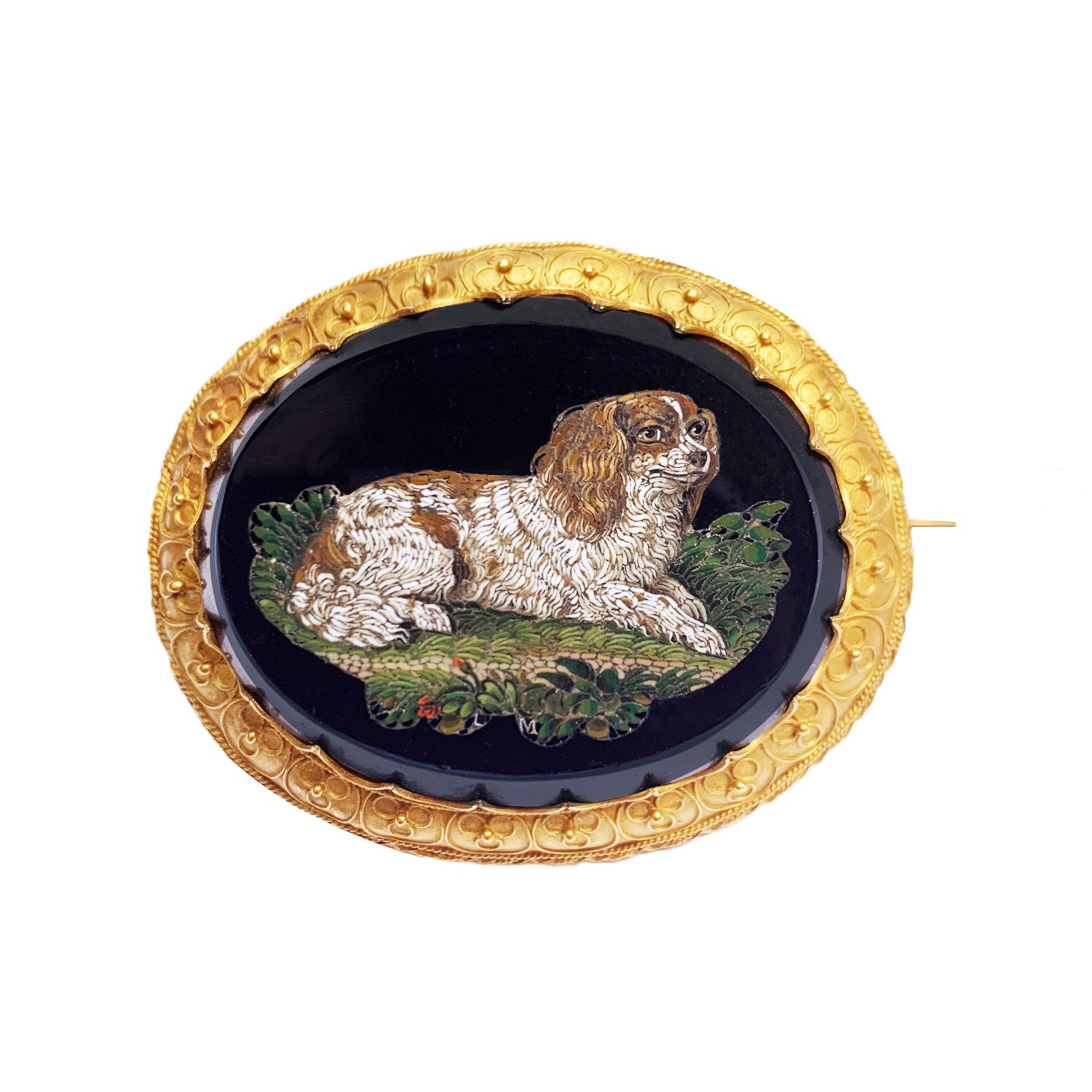 Spilla in Micromosaico di Luigi Moglia Raffigurante Cagnolino Falene