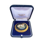 Questa spilla in oro e micromosaico, realizzata da Luigi Moglia intorno al 1840, presenta un'affascinante raffigurazione di un cagnolino. In particolare, la firma di Moglia, "LM", è delicatamente posizionata nell'erba sotto la figura canina. Il Museo Borgogna di Vercelli espone con orgoglio una riproduzione di Moglia del magnifico affresco di Guido Reni, "Aurora", originariamente ospitato nel Palazzo Pallavicini Rospigliosi, Roma.
