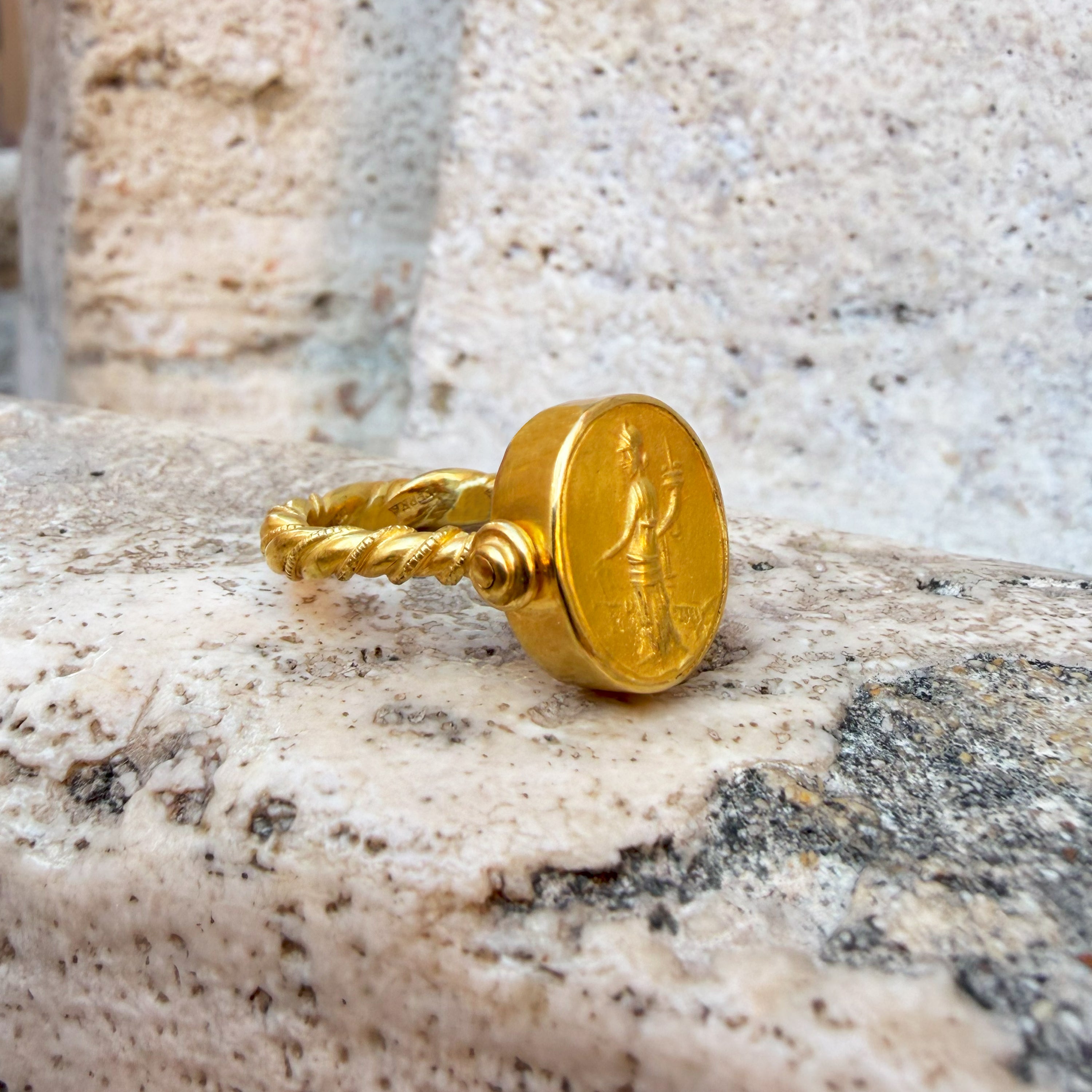 GODDESS FORTUNA Authentic Ancient Roman Carnelian Intaglio 1st-2nd Cent. AD 22 kt Gold Ring