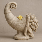 In her left hand she holds a cornucopia, symbol of abundance and prosperity, while in her right she carries a rudder, representing control over fate and the direction of human life. On her head she wears a modius, a cylindrical headdress that signifies measure and agricultural fertility.Fortuna was