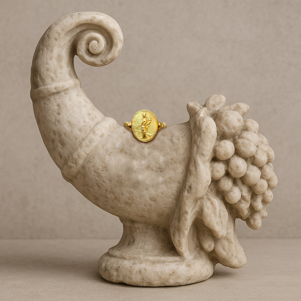 This ring, with its clear iconography and traditional symbols, expresses the Roman ideal of Fortuna as a balance between chance and control — a divine gift harmonized with human virtue.