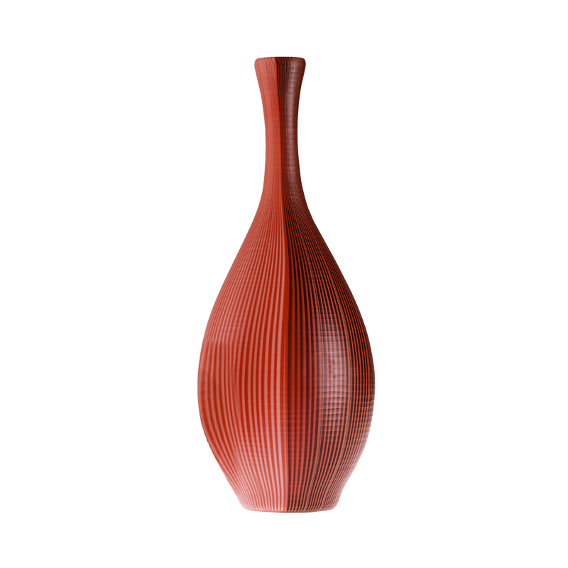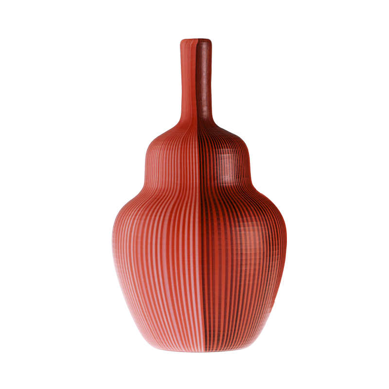 The beaten fabrics are vases in blown and hand-crafted glass,