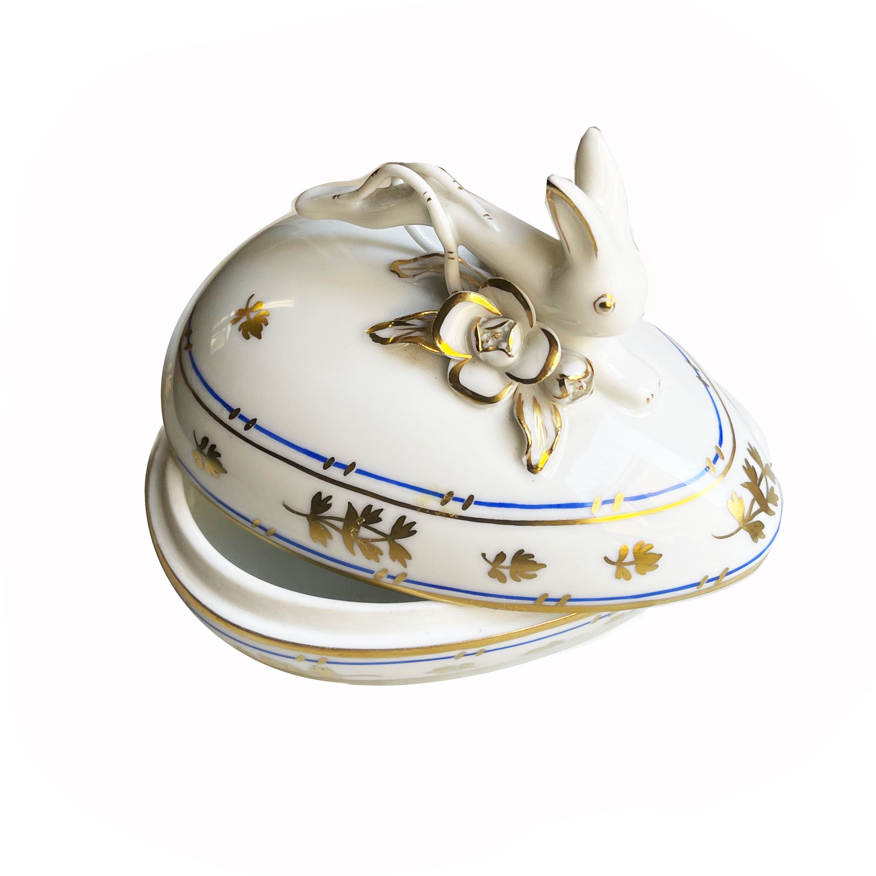 Vintage porcelain egg (1980s) with bunny-shaped handle from the prestigious Herend manufacture, finished in pure gold